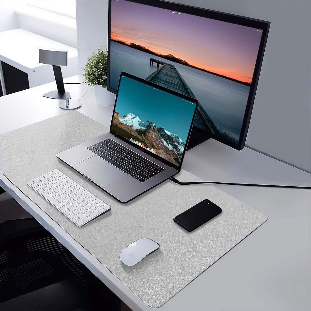 Prémiová koženková podložka pod myš a klávesnici 80x40 cm - světle šedá
