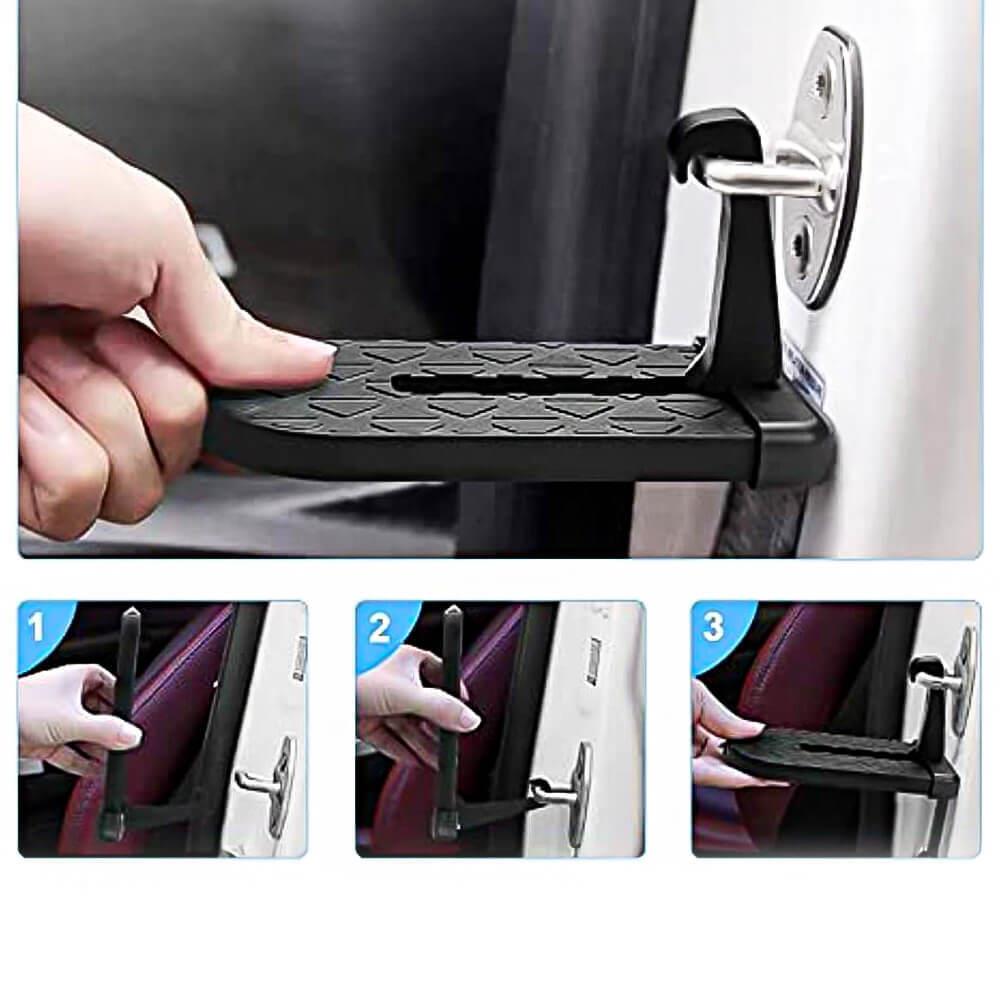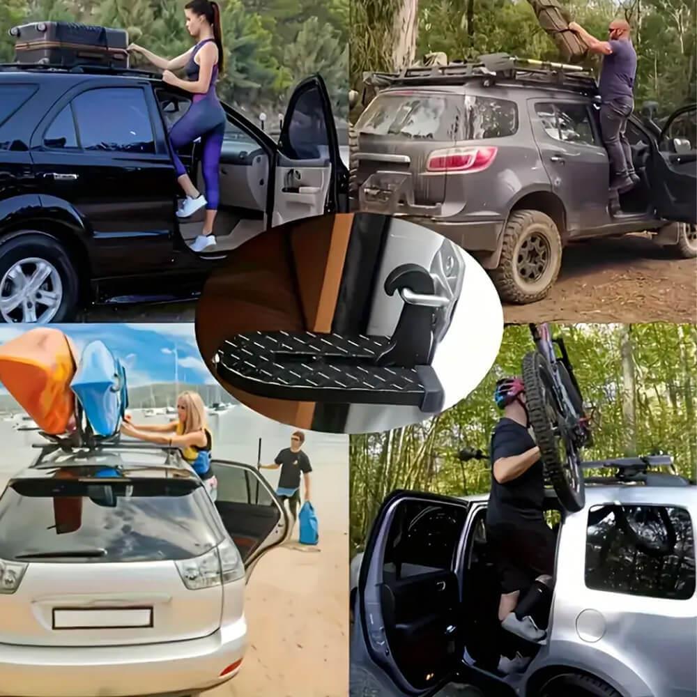 Přídavné stupátko do dveří auta je praktický pomocník, který vám umožní snadno dosáhnout na střechu vozu. Už nemusíte hledat žebřík nebo stoupat na rám dveří, stupátko poskytne pevnou a bezpečnou oporu. Díky univerzálnímu designu je kompatibilní s většinou automobilů.