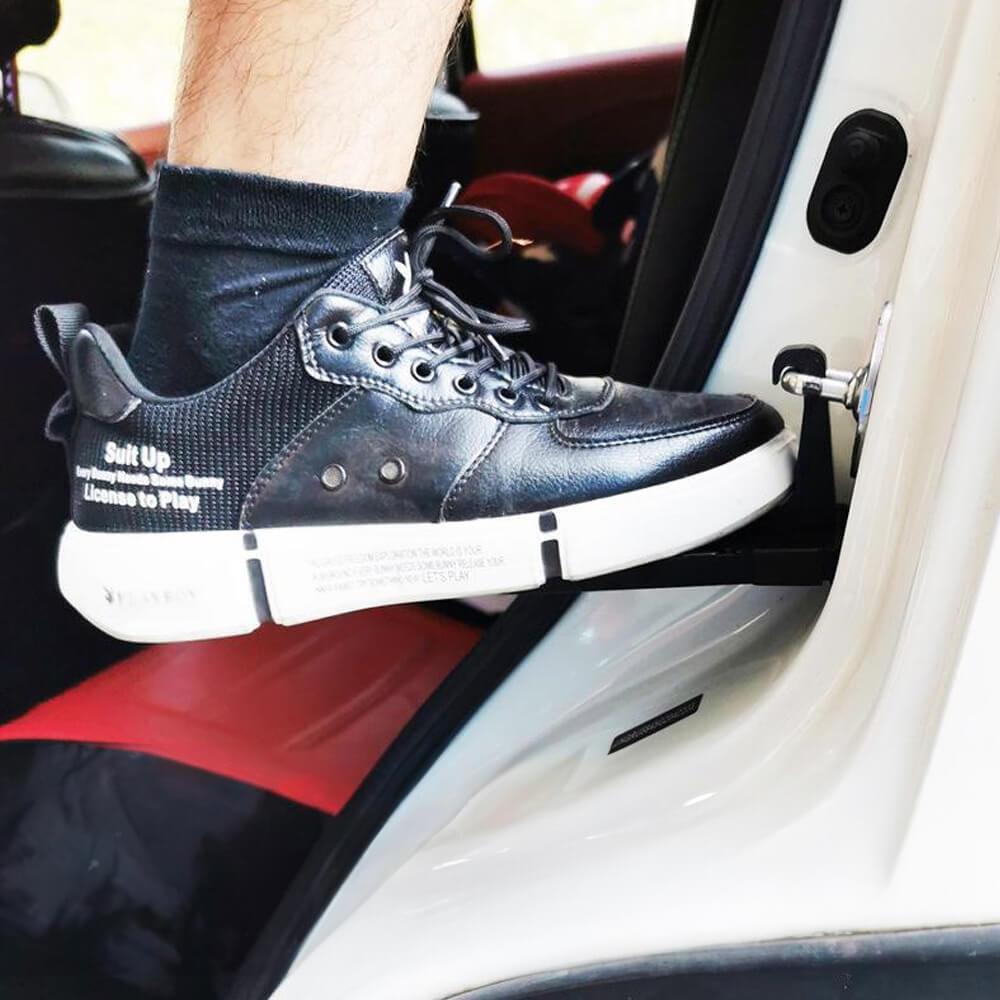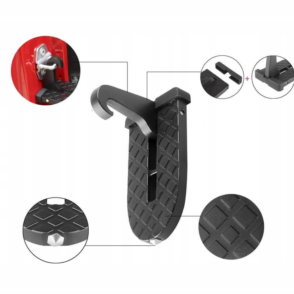Přídavné stupátko do dveří auta je praktický pomocník, který vám umožní snadno dosáhnout na střechu vozu. Už nemusíte hledat žebřík nebo stoupat na rám dveří, stupátko poskytne pevnou a bezpečnou oporu. Díky univerzálnímu designu je kompatibilní s většinou automobilů. Stupátko se snadno připevní během několika vteřin a stejně rychle jej zase složíte. Díky kompaktním rozměrům se pohodlně vejde do přihrádky ve dveřích auta. Navíc poslouží v případně nouze také jako bezpečnostní kladívko na rozbití okna.