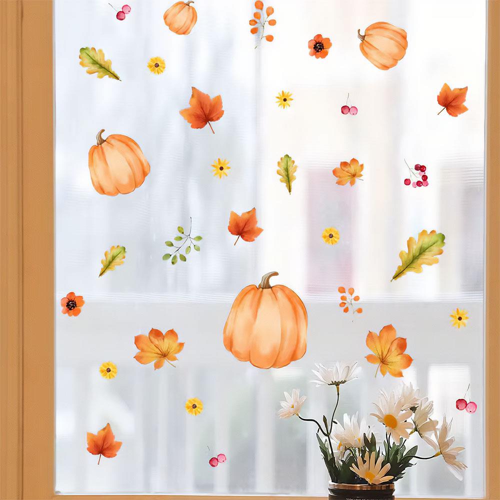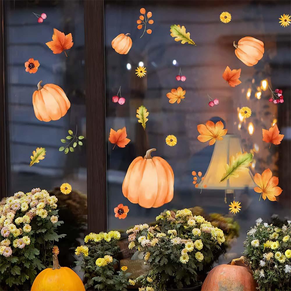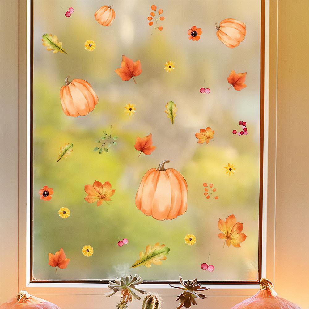 Podzimní samolepky s motivy dýní, květin a listí jsou ideální dekorací pro zpříjemnění chladných dnů. Vhodné jsou nejen na okna, ale i na zrcadla, dveře nebo další hladké povrchy. Stačí pár vteřin a interiér získá sezónní šmrnc a příjemnou atmosféru.