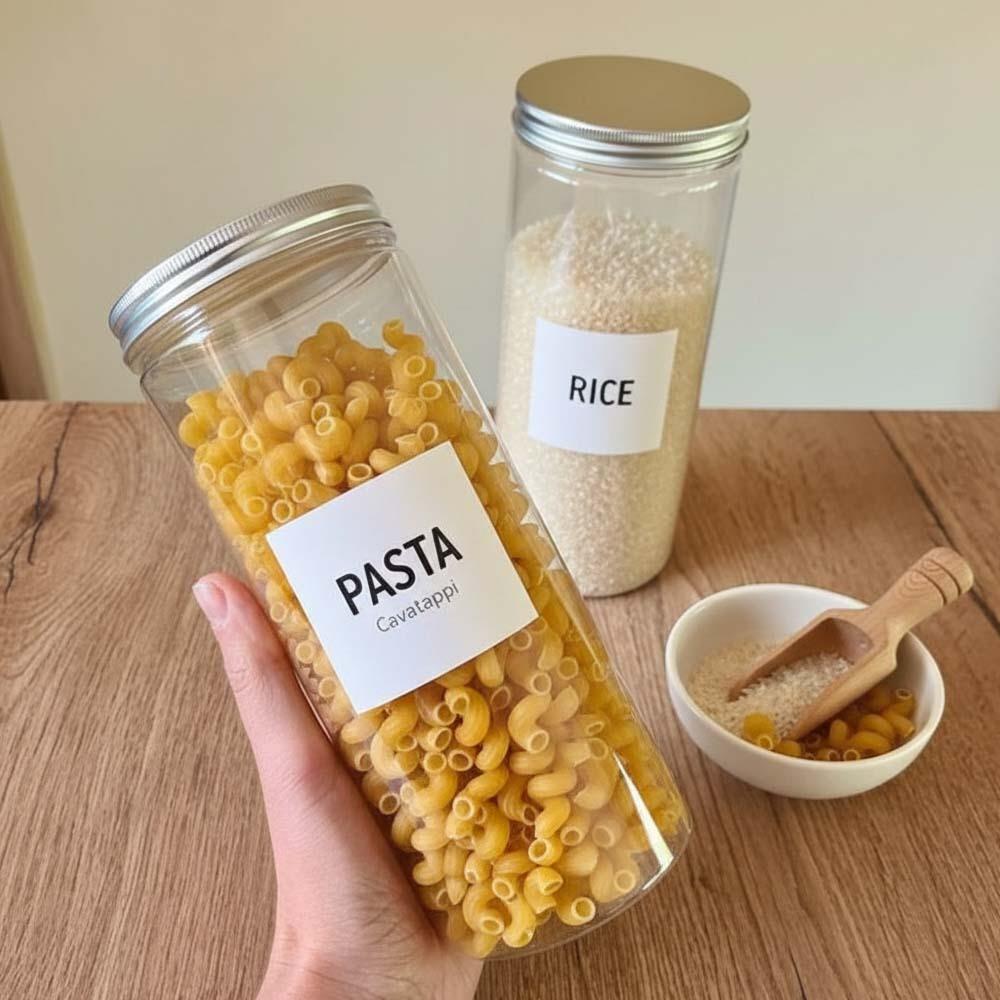 Rýže, mouka, těstoviny nebo cukr! Popište si dózy díky těmto samolepkám.