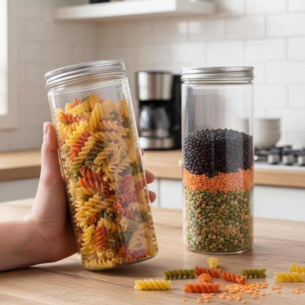 Ideální pro skladování luštěnin, těstovin, ořechů, cereálií či sušeného ovoce Průhledný design - umožňuje snadno vidět obsah a rychle se zorientovat Lehká a odolná - snadná manipulace a dlouhá životnost Šroubovací víčko - zajišťuje těsné uzavření a ochranu potravin před vlhkostí a škůdci