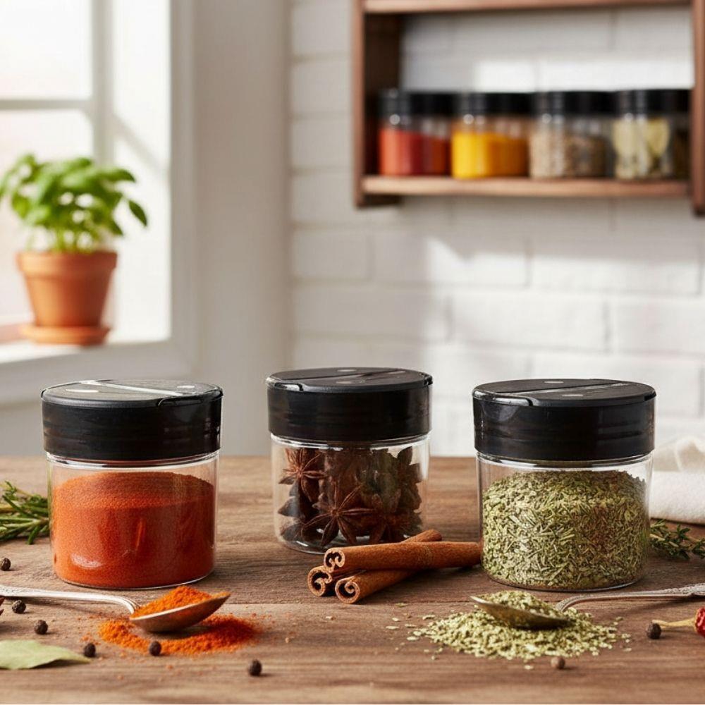 Dva způsoby kořenění – jemné posypání nebo praktické dávkování pomocí lžičky Ideální pro širokou škálu koření, cukr, sůl, bylinky – perfektní i na cesty! Díky čirému provedení nádobky lehce vidíte zbývající obsah koření
