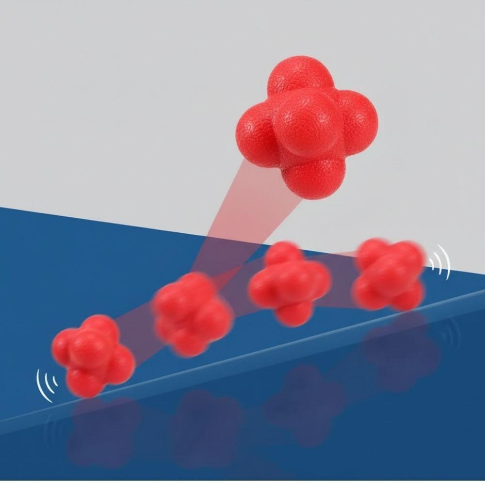 Reakční tréninkový míček je ideální pomůckou pro rozvoj rychlých reflexů, koordinace a pohotových reakcí. Speciální tvar zajišťuje, že se míček při dopadu odráží pokaždé jinak, což vás nutí neustále sledovat jeho pohyb a rychle reagovat. Trénink s tímto míčkem si užijete - je nejen efektivní, ale zároveň i velmi zábavný.Díky kompaktním rozměrům 5 × 5 × 5 cm je míček lehký a snadno přenosný, takže ho využijete kdekoliv - na hřišti, v tělocvičně i na zahradě. Skvěle poslouží pro individuální nebo skupinový trénink a pobaví jak děti, tak dospělé, kteří chtějí vylepšit svoji sportovní pohotovost.