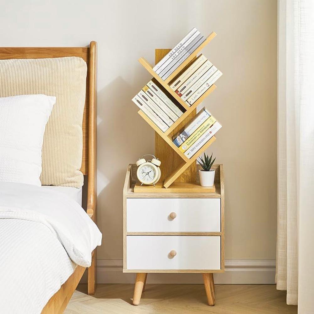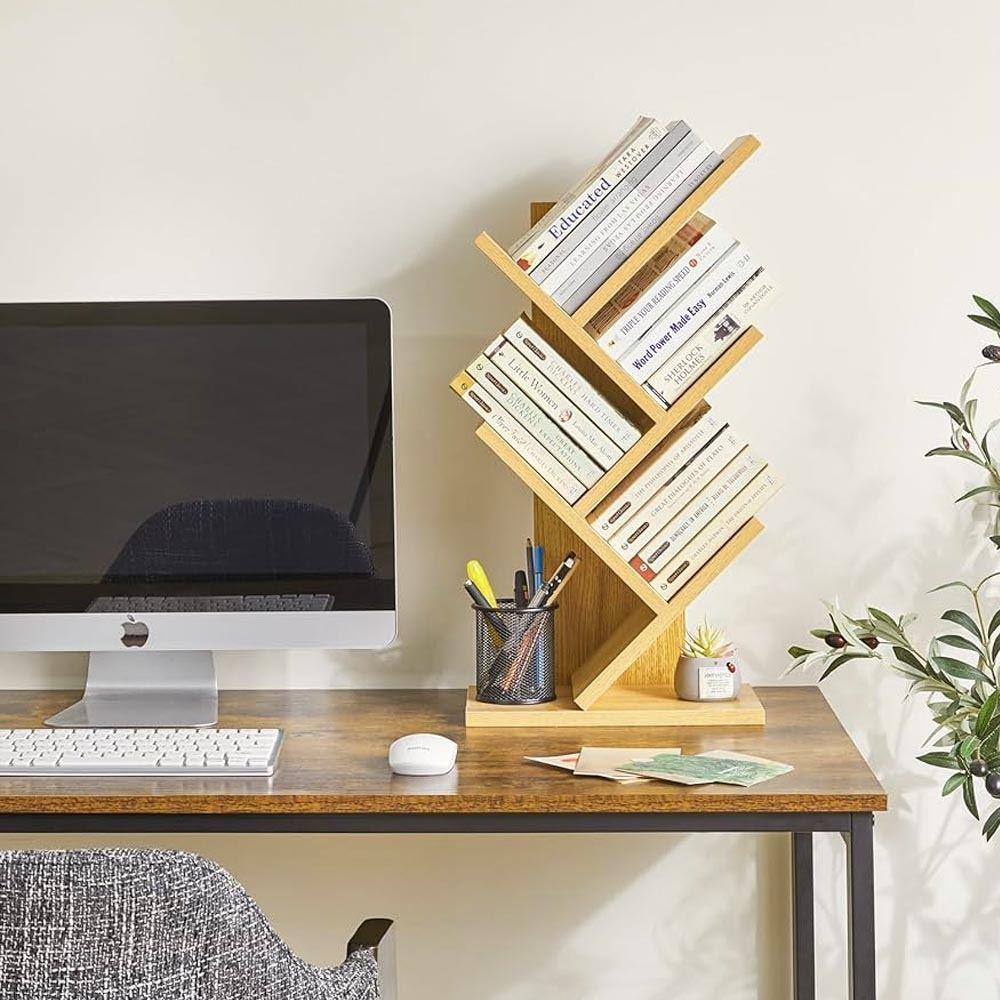 Ať už máte doma desítky knih nebo jen pár oblíbených titulů, rozhodně se vám bude hodit tento praktický a krásný regál, který vypadá, jako by rostl ze země. Jeho čtyři větvené poličky se stanou odpočinkovým místem pro vaše oblíbené příběhy či jiné kousky denního tisku, takže se nebudete muset bát, že se poškodí, nebo že by se jen tak povalovaly po stole.Doma zavládne příjemná atmosféra organizace a vám nezbude nic jiného než si vybrat, s jakým čtivem budete trávit své volné chvilky.
