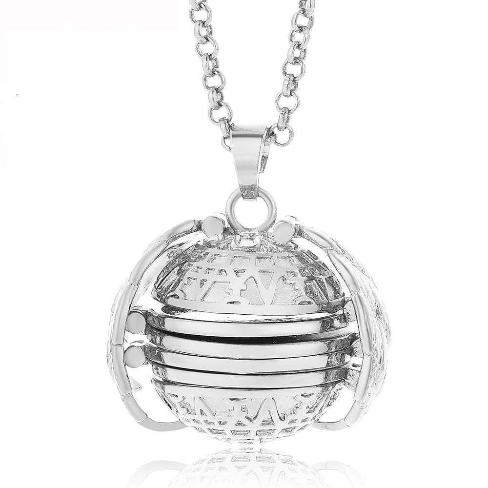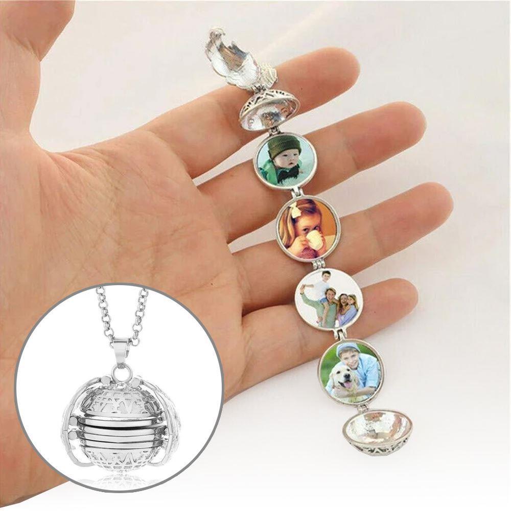 Rozkládací přívěsek s medailonkem je jako stvořený pro ženy, které se rády zdobí výraznými šperky. Medailonek je ukrytý v přívěsku ve tvaru okřídlené kuličky a obsahuje čtyři okénka, do kterých můžete vložit fotky vašich blízkých, ale i jakékoliv jiné fotky. Potom přívěsek opět složte a zacvakněte křidélka. Fotky vašich milých tak můžete mít stále u sebe.Pro lepší přilnutí můžete při vkládání fotek kápnout na plochu okének medailonku kapičku vteřinového lepidla.