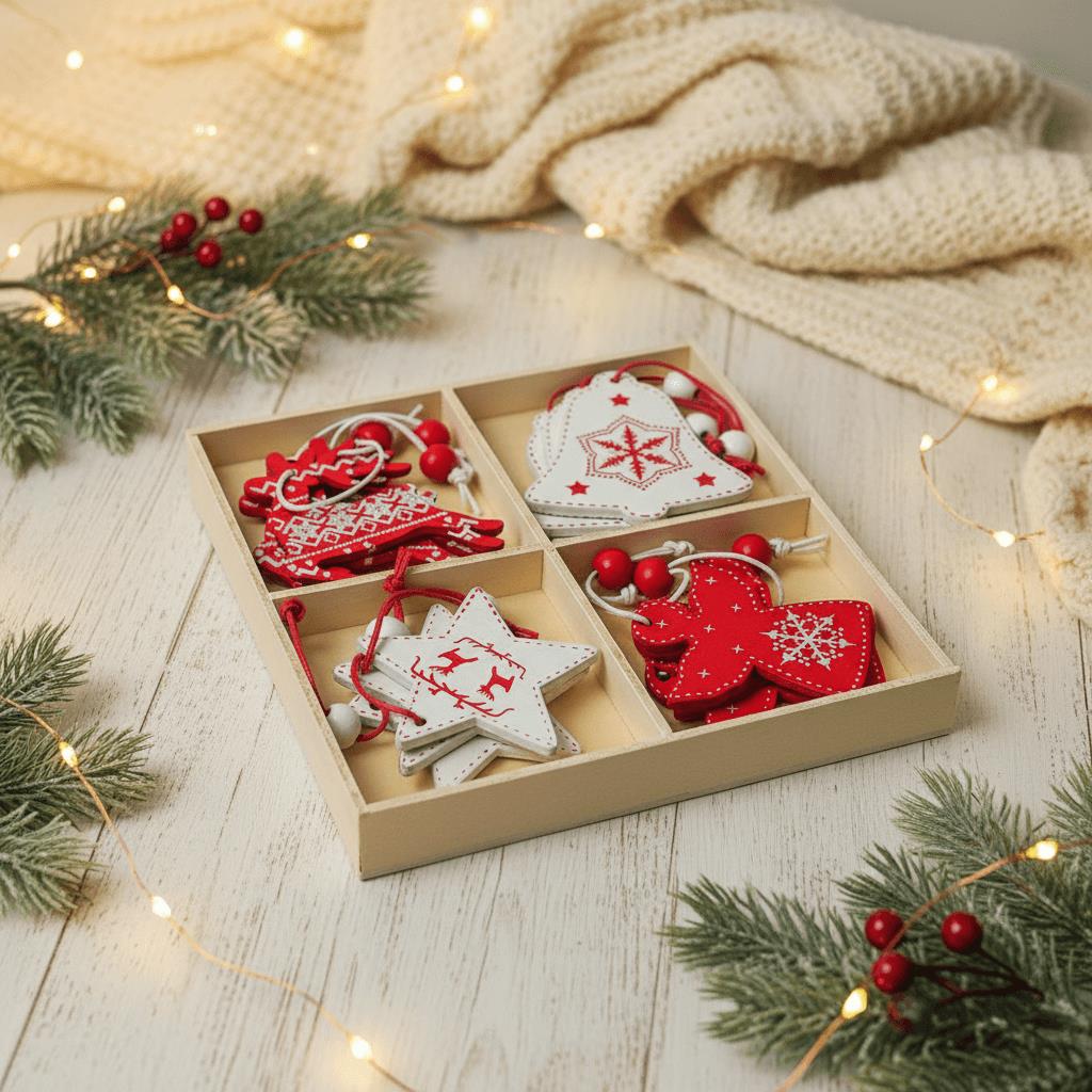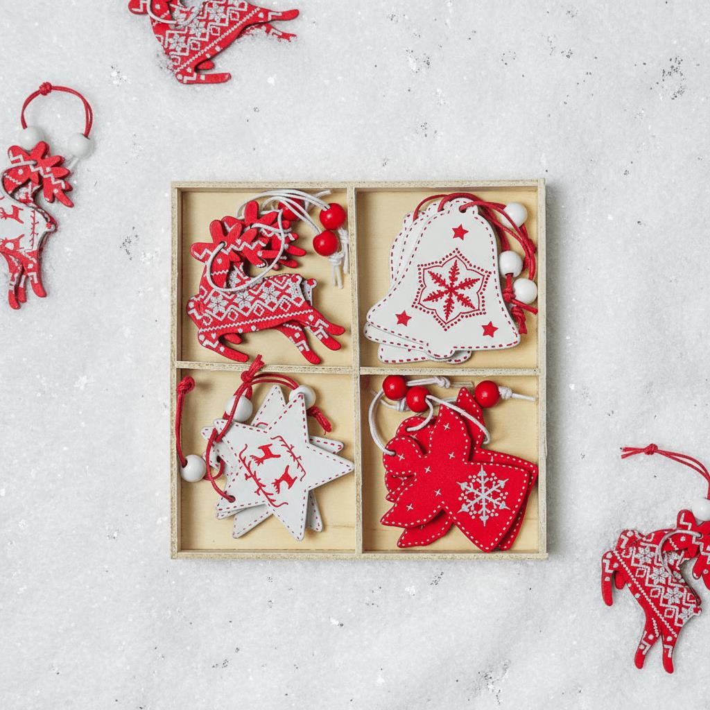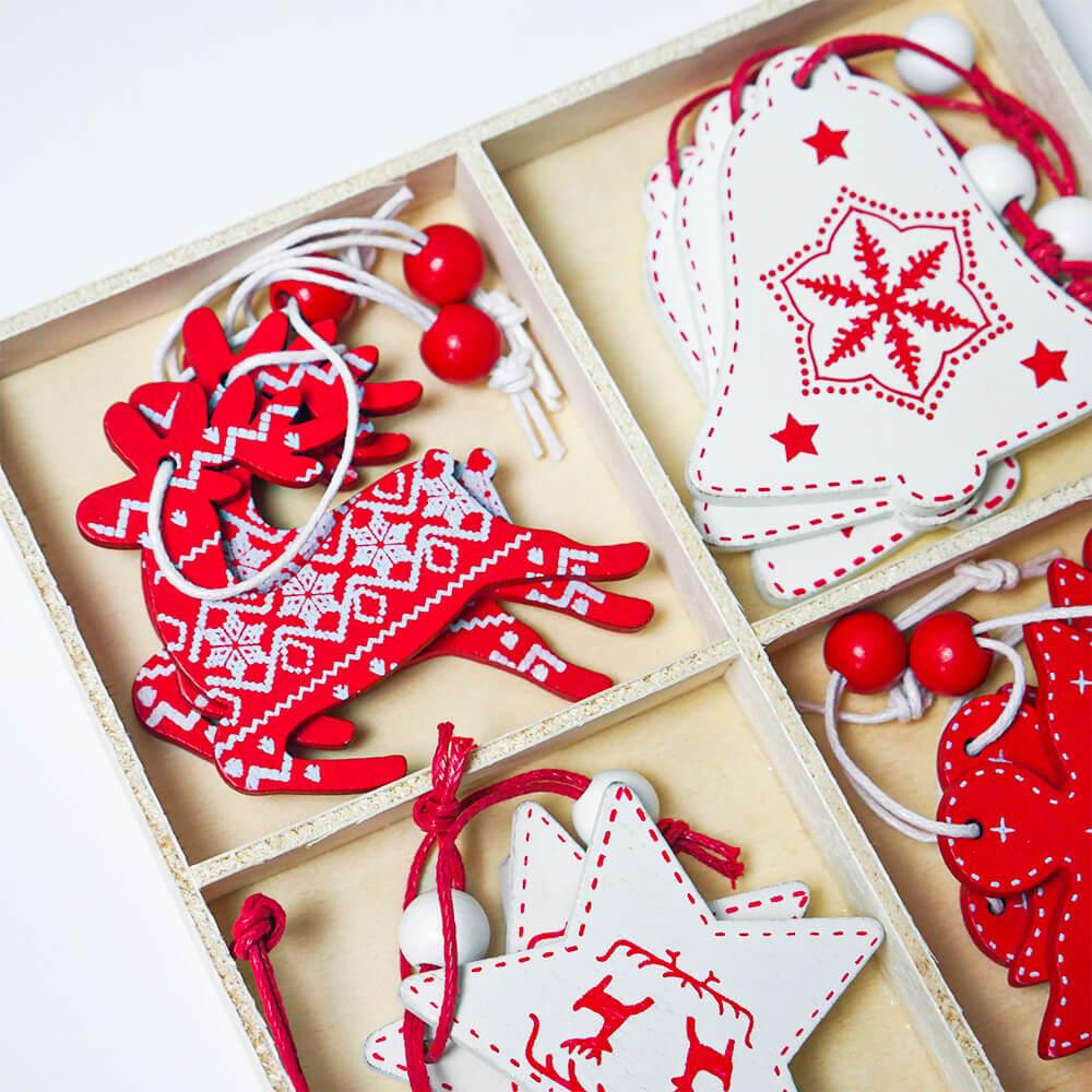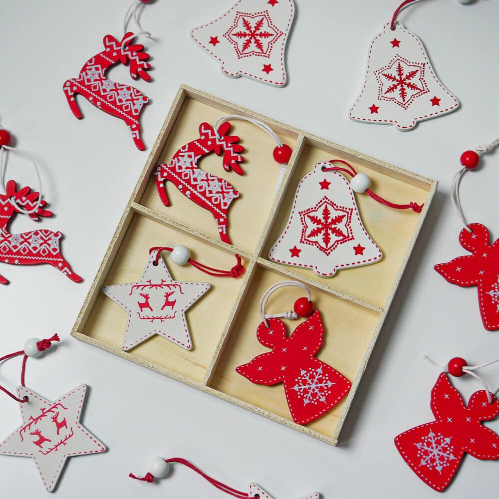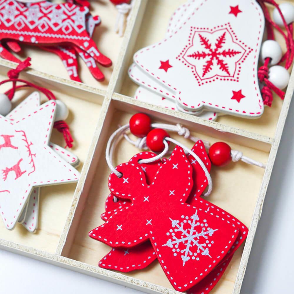 Sada dřevěných ozdob je to pravé ořechové, pokud jste milovníky jednoduchého a přírodního stylu. Dřevěné ozdoby působí na stromečku velmi vkusných dojmem a mají jednu obrovskou výhodu. Jsou oproti skleněným ozdobám nerozbitné, takže se nemusíte bát nějaké nepříjemné nehody, pokud s vámi zdobí i vaše děti. Dřevěné ozdoby vám vydrží dlouhá léta a jen tak se neokoukají! Dřevěné ozdoby nikdy nevycházejí z módy a ve vašem interiéru bude příroda ladit vždycky! Z balení na vás vykoukne 12 krásně malovaných andělů a srdíček, které mají provázek s kuličkou. Stačí je zavěsit na stromeček či kamkoliv jinam a máte kouzelnou vánoční výzdobu!