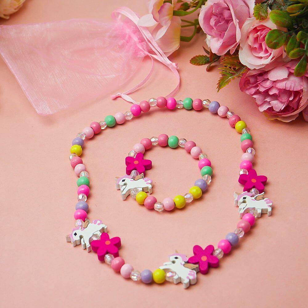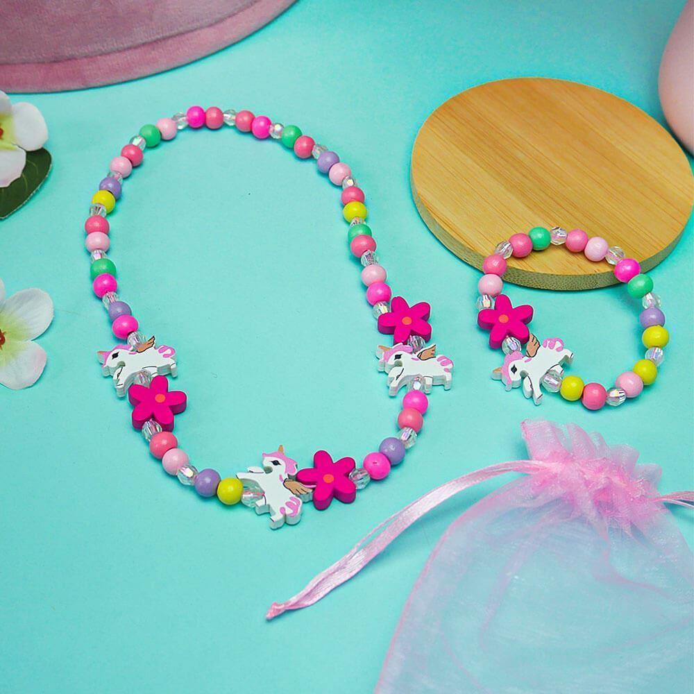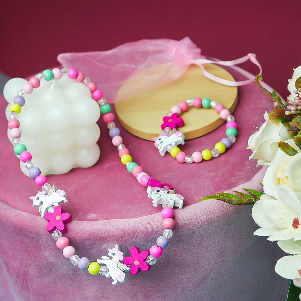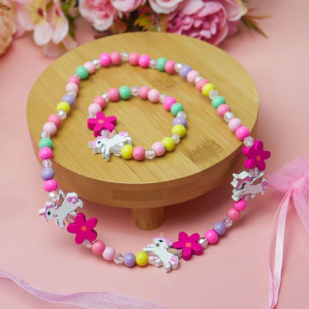 Vykouzlete malé princezně úsměv na tváři s kouzelnou sadou náhrdelníku s náramkem. Korálky svou barevností dávají šperkům svůj osobitý vzhled a jedinečnost. Dřevěný náramek a náhrdelník jsou vyrobeny v krásném dřevěném provedení a jsou příjemné na každodenní nošení. Sada šperků je ideální jako dárek k narozeninám, svátku či k Vánocům.