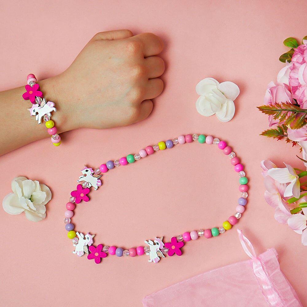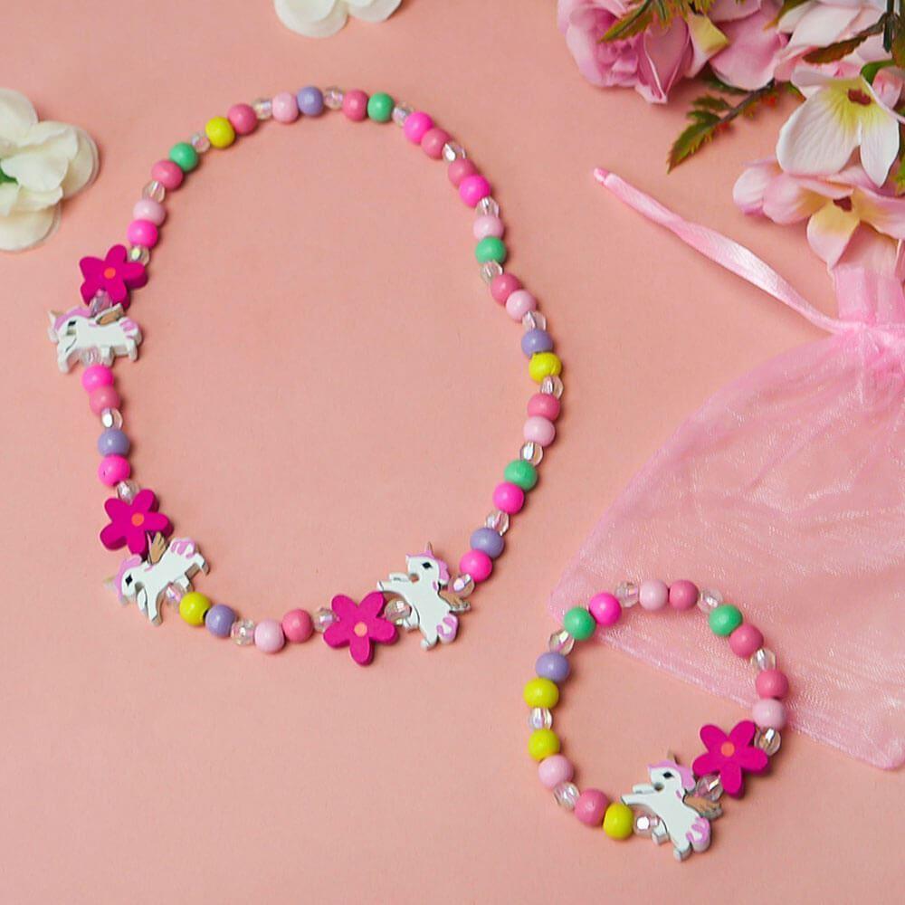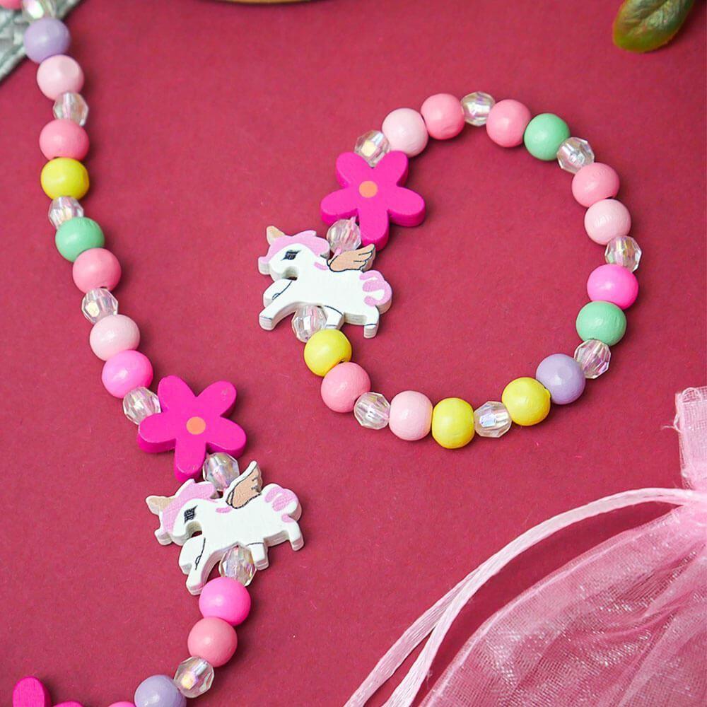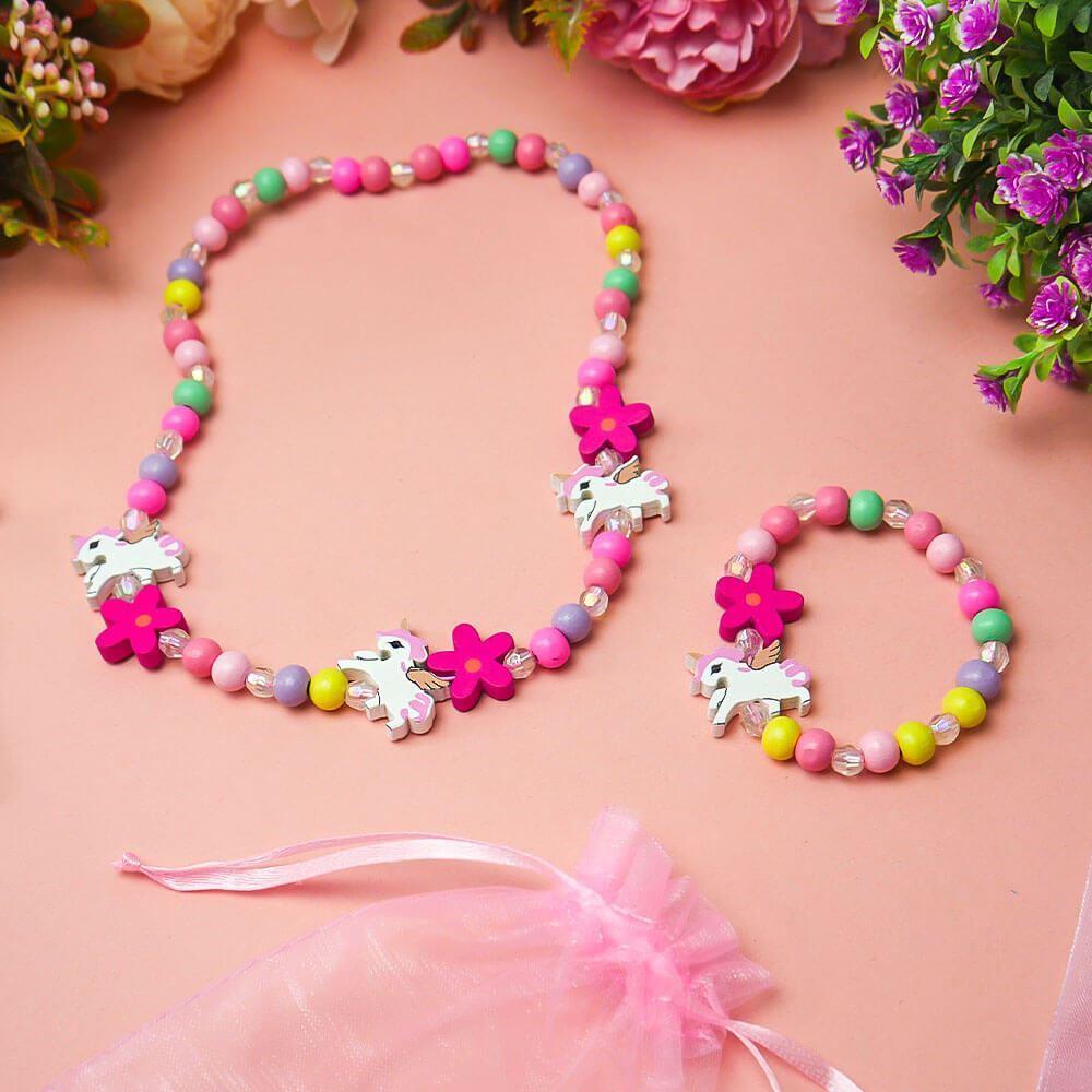 Vykouzlete malé princezně úsměv na tváři s kouzelnou sadou náhrdelníku s náramkem. Korálky svou barevností dávají šperkům svůj osobitý vzhled a jedinečnost. Dřevěný náramek a náhrdelník jsou vyrobeny v krásném dřevěném provedení a jsou příjemné na každodenní nošení. Sada šperků je ideální jako dárek k narozeninám, svátku či k Vánocům.