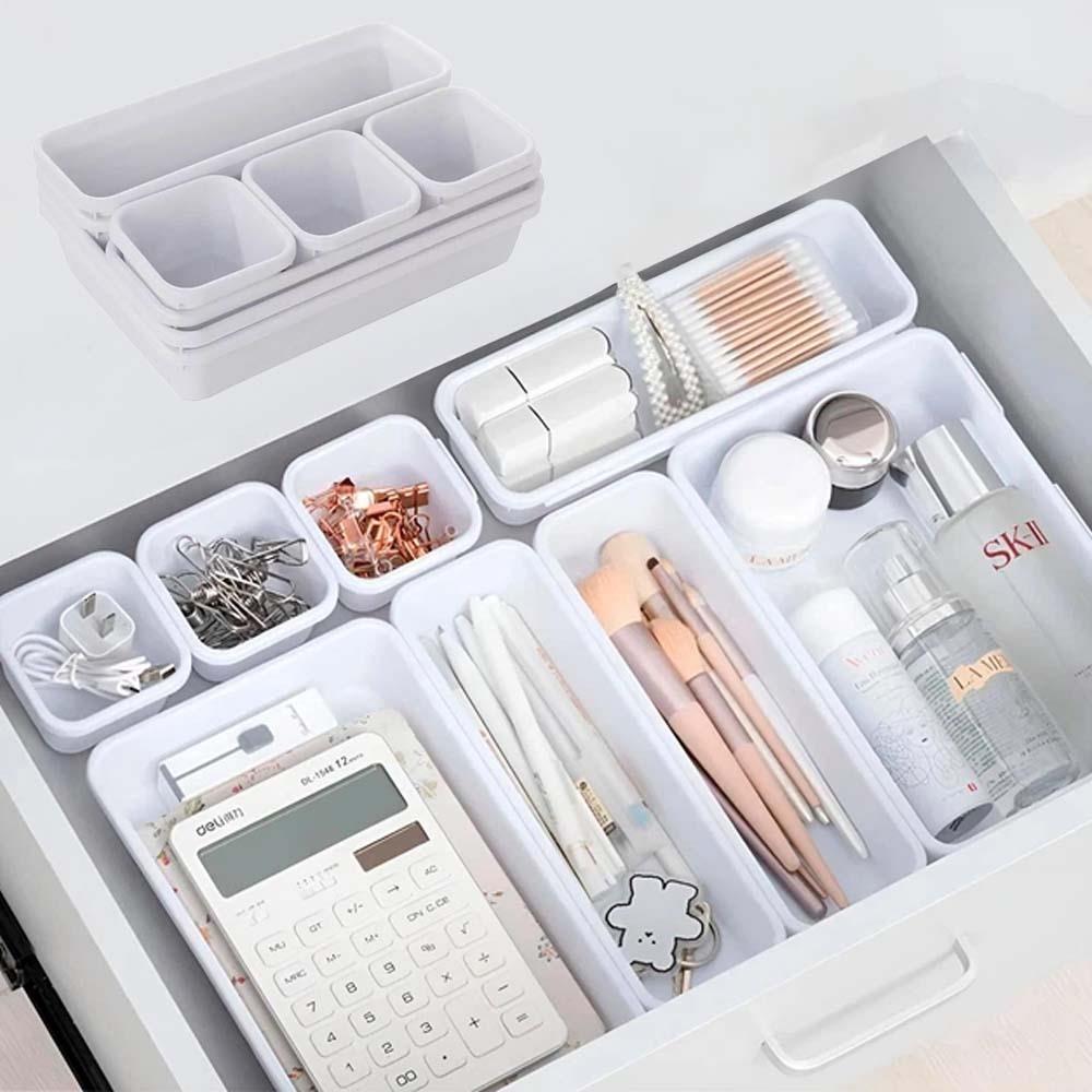 Uspořádejte si všechny drobnosti do praktických organizérů. Jednotlivé organizéry lze libovolně seskládat do šuplíku, skříně či třeba na poličku. Balení obsahuje celkem osm organizérů ve třech různých velikostech. Praktická sada, se kterou snadno udržíte pořádek v kuchyni, v koupelně i v ložnici! Do organizérů můžete uložit kosmetiku, šperky, psací potřeby či třeba kuchyňské náčiní!