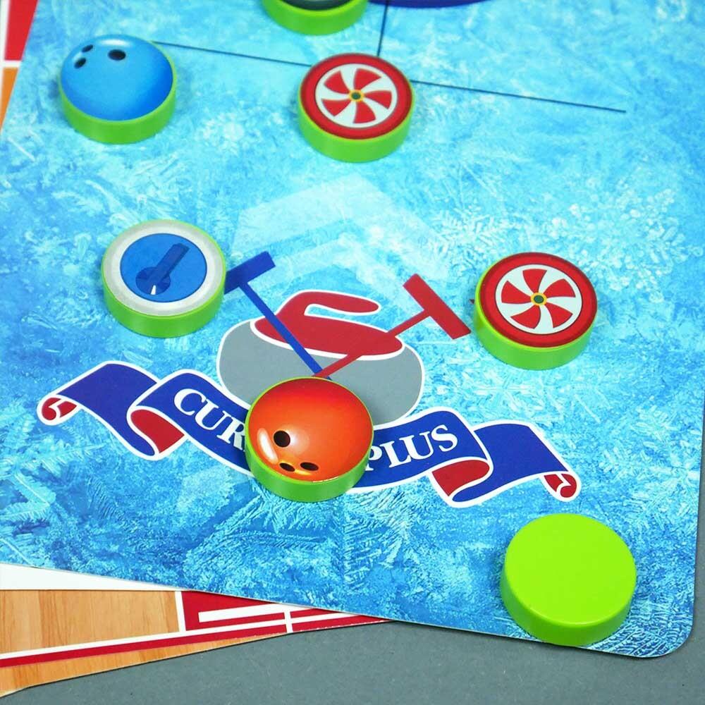 Máte doma spoustu stolních her, ale už je máte příliš ohrané a moc vás nebaví? Říkáte si, že už vás jen tak něco nepřekvapí? Potom vyzkoušejte tuto sadu šesti her, se kterou teprve poznáte, jaké to je zažít kopu zábavy! Čeká na vás takový výběr, který možná neznáte. Je libo kuželky či trochu vylepšený bowling? Co si tak zahrát fotbal, basketbal nebo dokonce curling a grand prix závody? Každá hra funguje na principu přesunu žetonů, k nimž náleží polepky dle typu hry, pomocí gumiček, které se připevňují na herní základnu. Můžete tak jimi sestřelovat kuželky, střílet do soupeřovy brány nebo dokonce závodit na zakřivené ploše. V tom případě využijete gumiček po obou stranách, abyste dovedli zatočit.