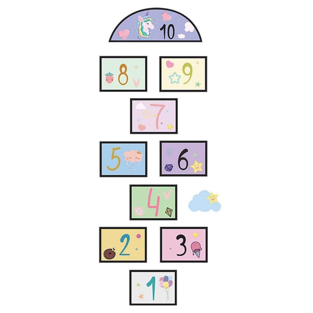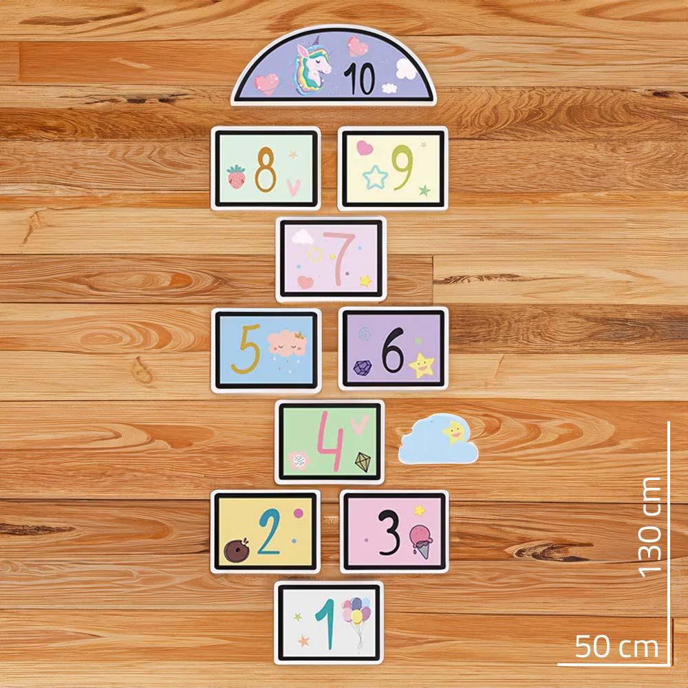 Nečekejte až bude venku ideální počasí na hraní, zaskákejte si panáka klidně i doma! S touto samolepkou si vytvoříte ideální prostor pro trénink této po generace oblíbené hry. Samolepka ozdobí dětský pokojíček a zároveň poskytne možnost, dát si do těla pokaždé, kdy se vám zachce. Ustupte tedy od počítačů a tabletu a vzhůru do skákání! Skákací panák pomáhá dětem rozvíjet přirozenou hrubou motoriku, koordinaci a správné držení těla. Samolepku jednoduše nalepíte na rovný, hladký a čistý povrch. Nejprve si nalepení rozvrhněte podle svého uvážení a následně nalepte a uhlaďte.