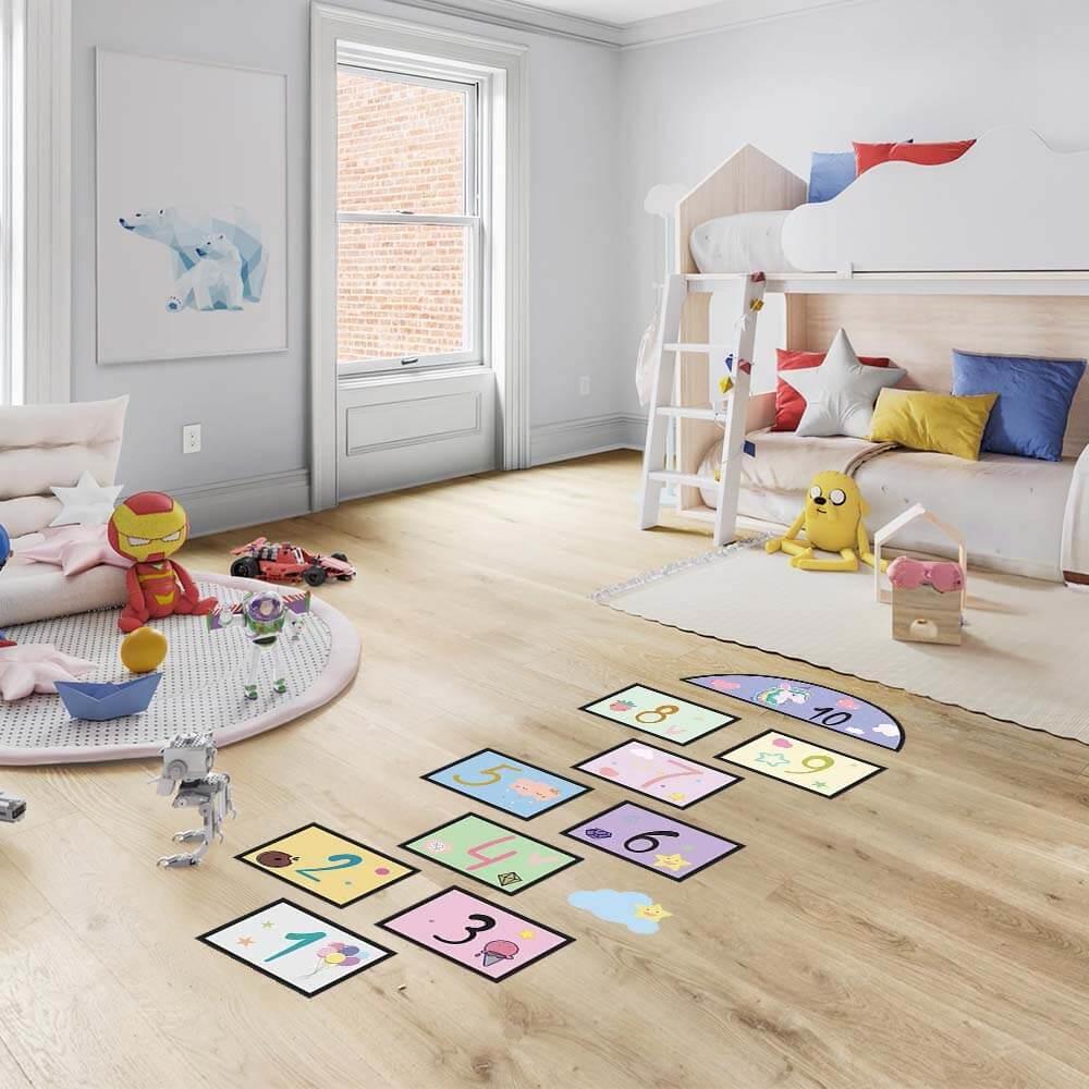 Jednoduchá a rychlá instalace Vhodné na dlažby, lina, vynilové a plovoucí podlahy Aktivita, která rozvíjí hrubou motoriku Stylová dekorace do pokojíčku