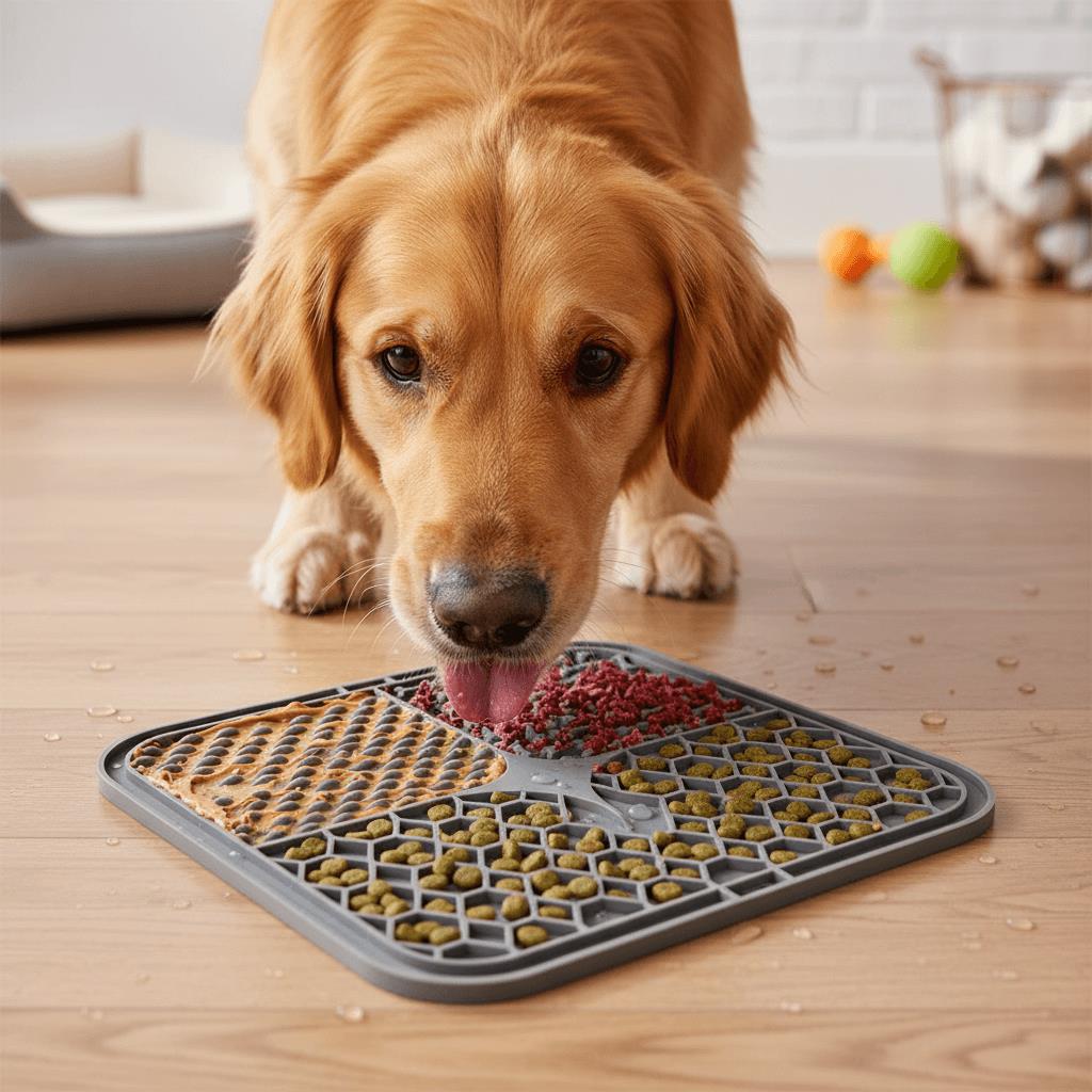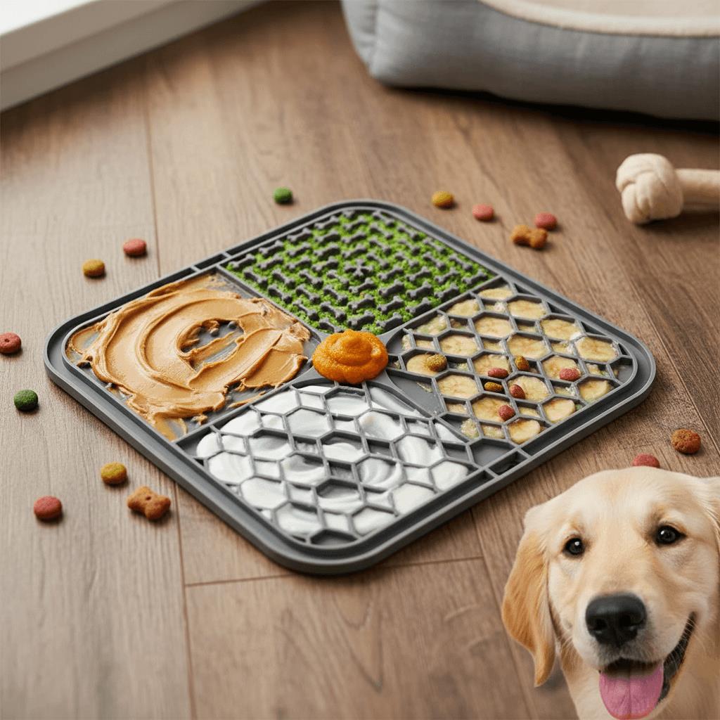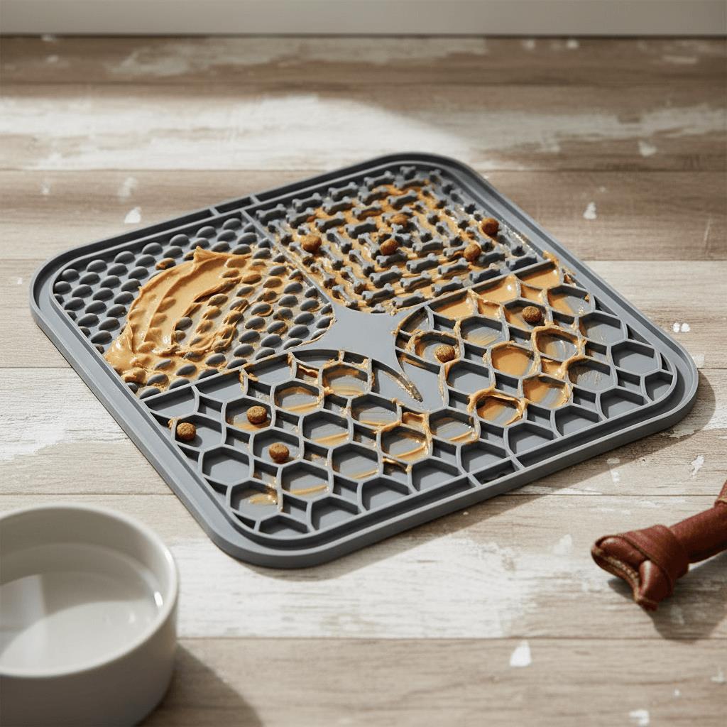 Máte doma neposedu, který se u koupání nebo stříhání drápků neustále vrtí? Lízací podložka mu pomůže se zklidnit. Díky oblíbené dobrotě rozetřené na podložce se pes soustředí na mlsání a nevnímá stresující okolí. Vhodná je pro psy všech velikostí a plemen. Výstupky na povrchu zpomalují lízání, zabraňují hltání a podpoří tak trávení psa. Navíc díky měkkému silikonu je podložka šetrná k zubům a snadná na údržbu. Jednoduše ji opláchnete nebo dáte do myčky. Pomozte svému chlupáčkovi se zdravým mlsáním společně se silikonovou lízací podložkou.