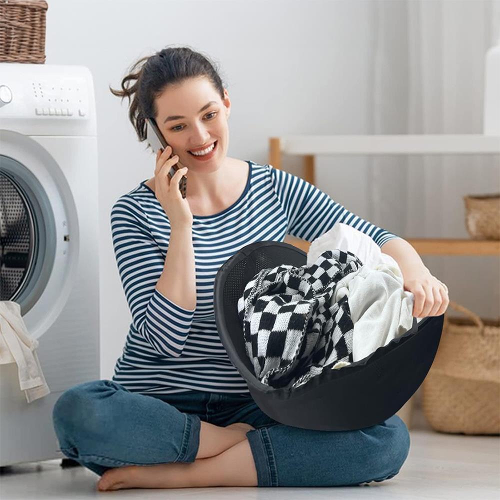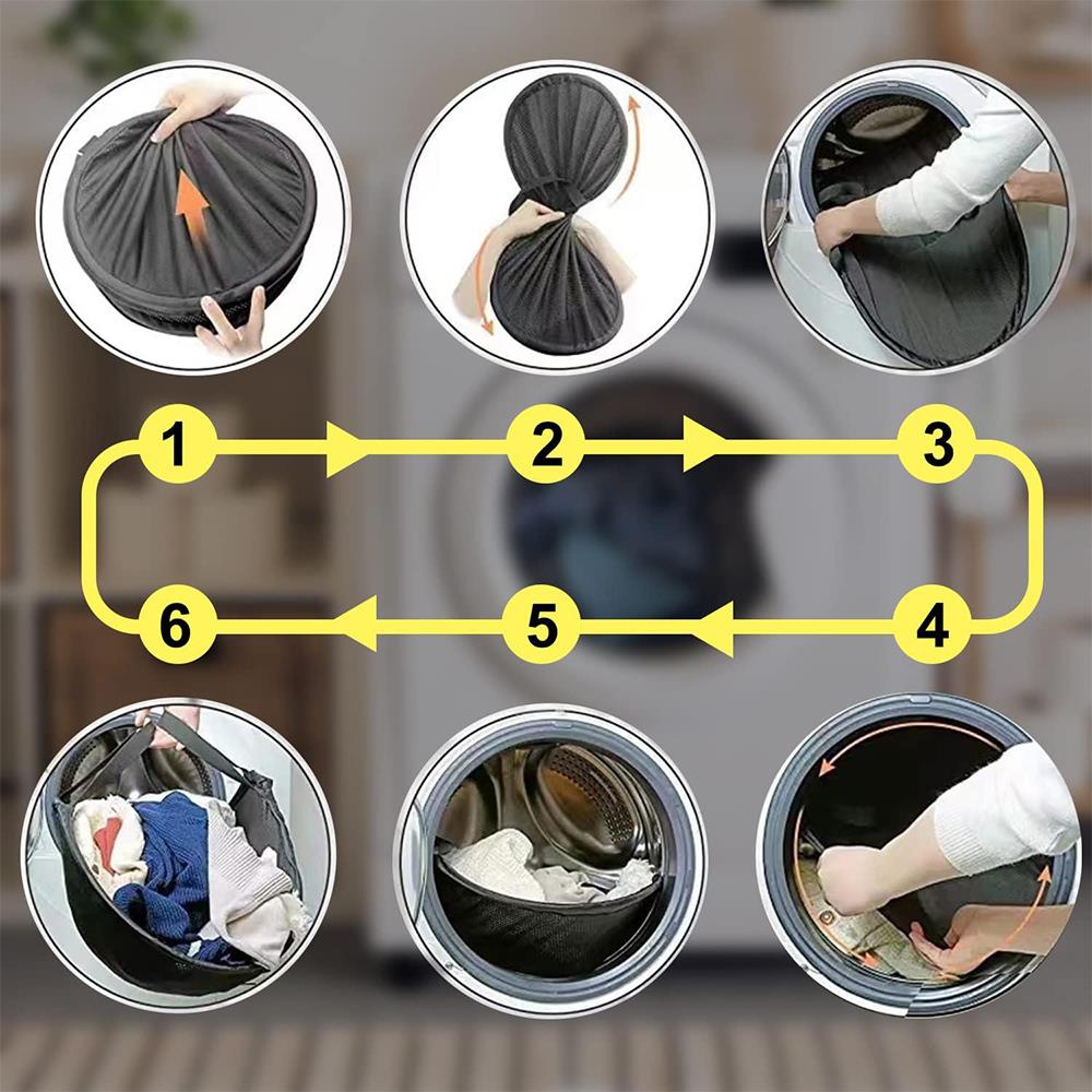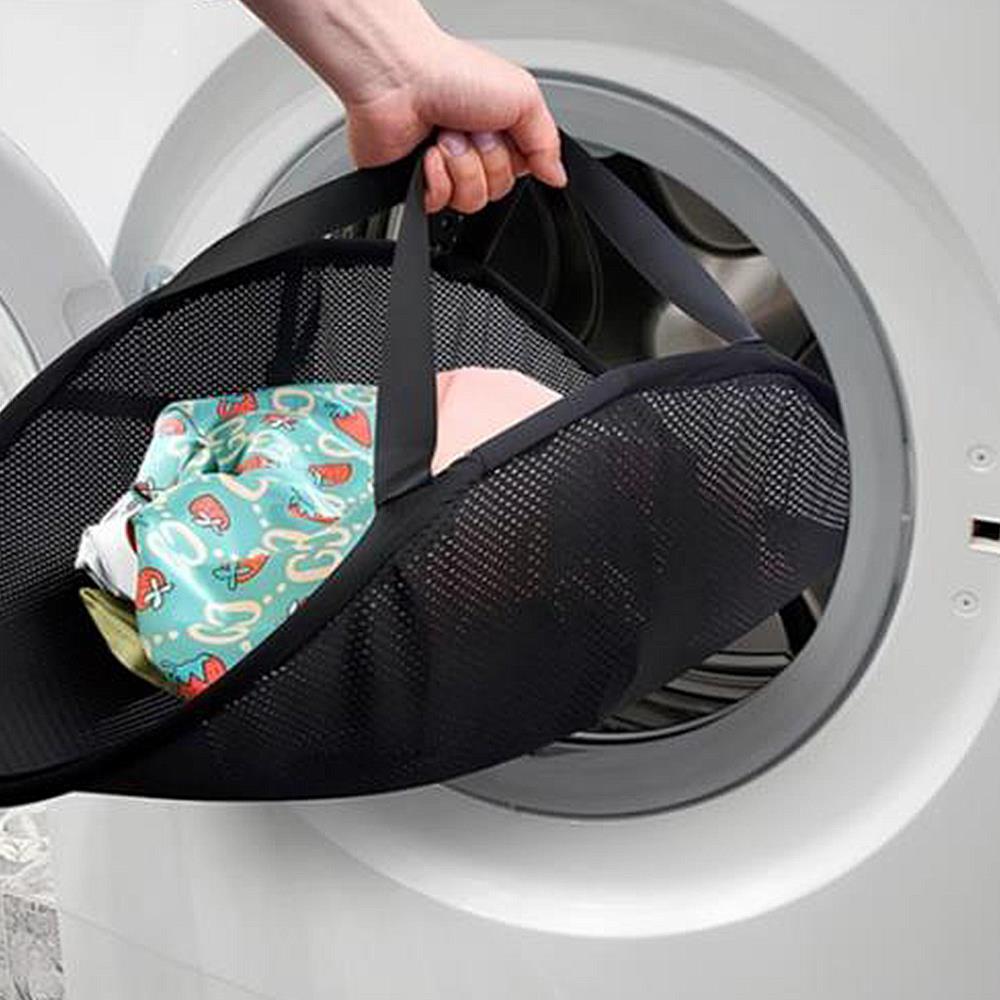Praktický síťovaný vak Poskytuje snadné a pohodlné vyndání veškerého prádla naráz Šetří čas a nervy – konec prohledávání pračky a vytahování jednotlivých kusů Skládací design s možností zavěšení