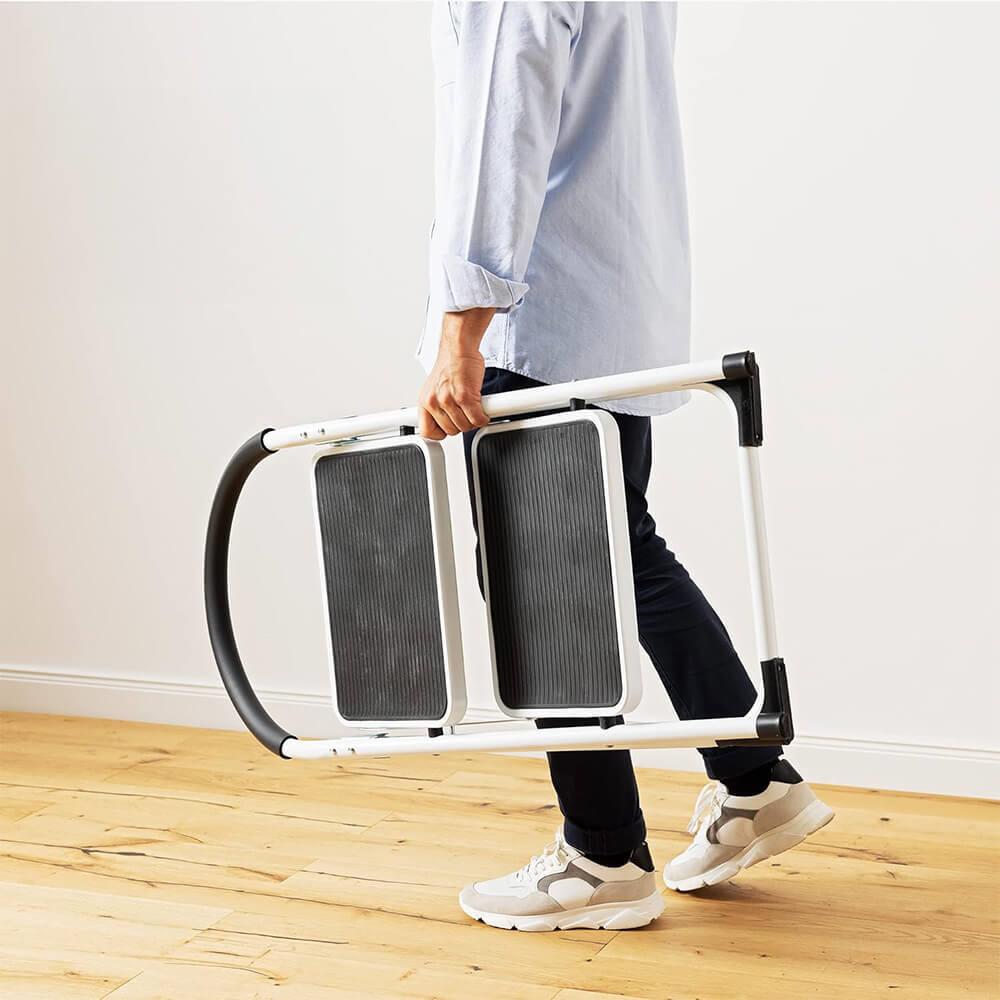 2 úrovně - vhodné pro použití v kuchyni, garáži nebo pracovně Pevná konstrukce - kovové zpracování s protiskluzovou úpravou schodů Sklopný mechanismus - usnadňuje úschovu i v omezených prostorech Pohodlná rukojeť - zajišťuje bezpečné a komfortní manipulaci Gumové koncovky - chrání podlahu a zajišťují lepší stabilitu
