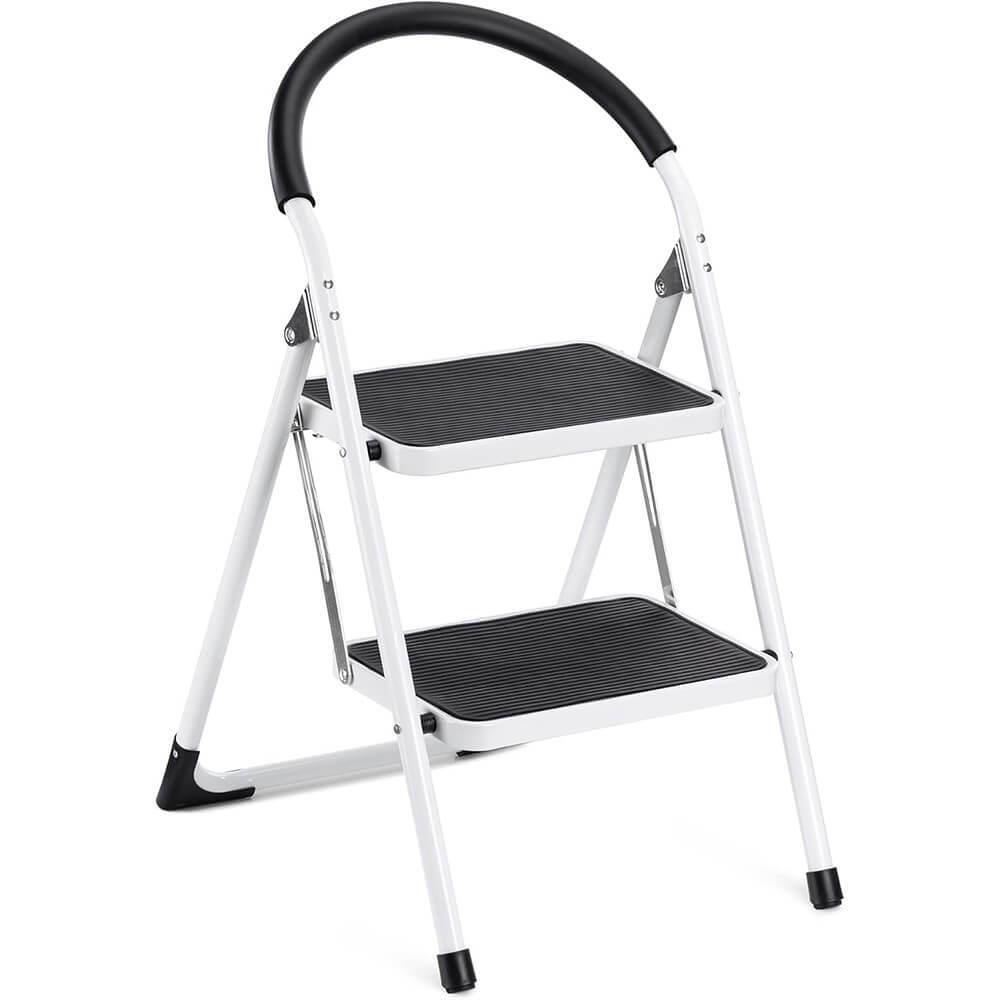 Praktické skládací schůdky s dvěma stupni jsou neocenitelným pomocníkem pro každodenní život doma, v kanceláři nebo garáži. Ať už si potřebujete sáhnout na vyšší polici, vyměnit žárovku nebo provést drobné opravy, tato židle vám poskytne stabilitu a pohodlné používání.Díky pevné kovové konstrukci jsou schůdky odolné, zatímco protiskluzové plochy a gumové konce nohou zajišťují maximální bezpečnost při používání. Ergonomický design úchytu podporuje stabilní výstup i sestup.Schůdky lze jednoduše složit do kompaktního rozměru, což umožňuje snadné ukládání i v omezených prostorách. Jsou lehké a snadno přenosné. Užijte si pohodlnou a bezpečnou práci při úklidu nebo ukládání předmětů do vyšších polic nebo skříní !