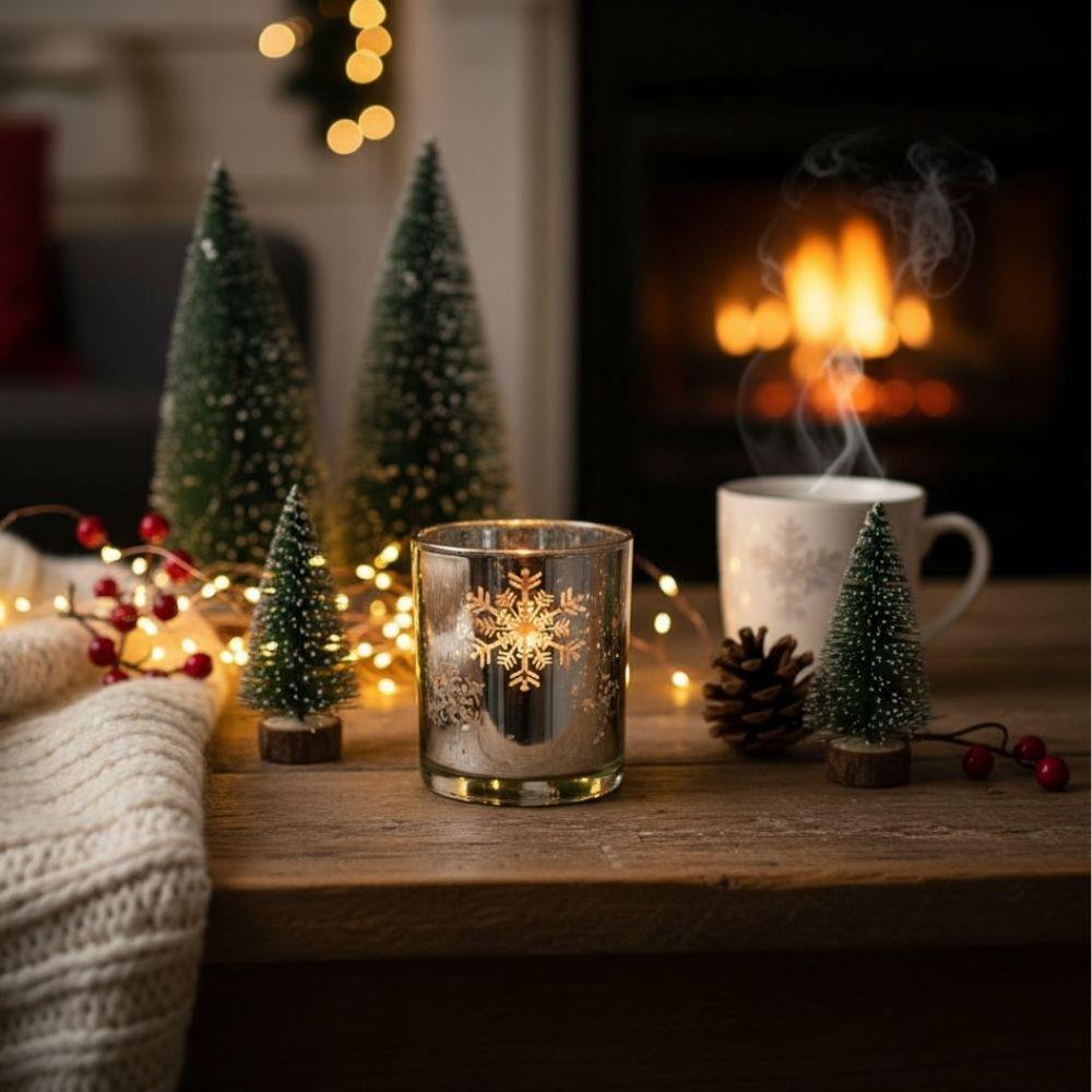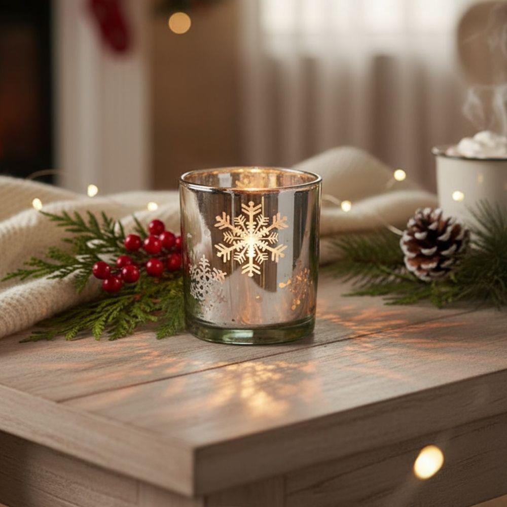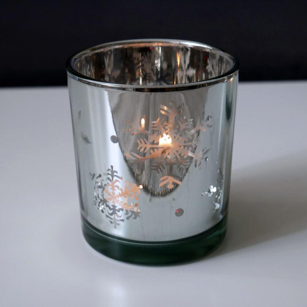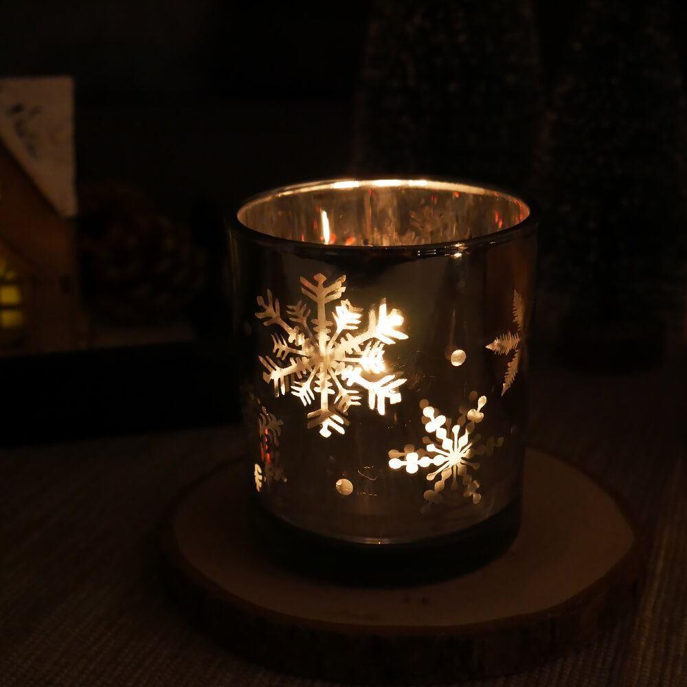 Skleněný vánoční svícen na čajovou svíčku - sněhové vločky
