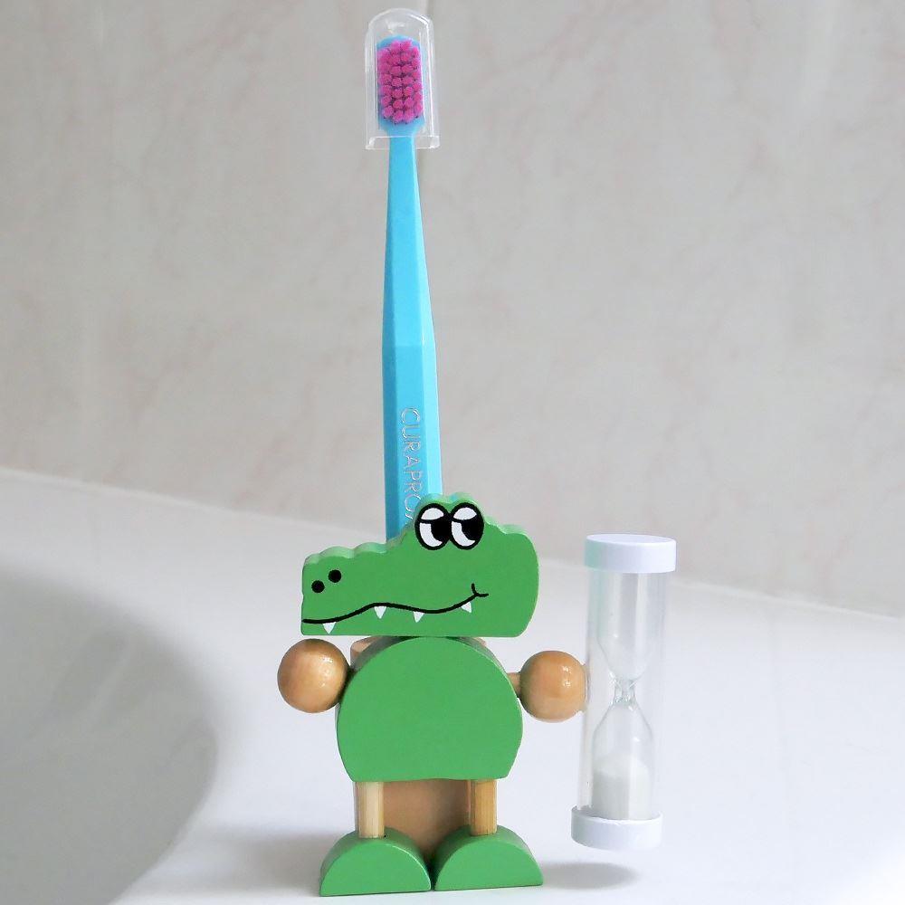 Jistě to také znáte. Pošlete svou ratolest vyčistit si před spaním nebo ráno po snídani zoubky, a během pár vteřin přiběhne zpátky se slovy, že už má vyčištěno. Ale vy samozřejmě víte, že takové tvrzení nemůže být dál od pravdy. Pokud se snažíte své děti vést k samostatnosti nebo zkrátka už nevíte, jak je přinutit k důkladnému vyčištění zubů, aniž byste nad nimi museli stát či nakonec čistit jejich zoubky za ně, máme pro vás řešení. Tento veselý dřevěný stojánek na kartáček s motivem krokodýla svírajícího přesýpací hodiny je totiž skvělou volbou pro všechny, co mají problém vydržet, a hlavně správně dočistit své zoubky. Dokud se písek v hodinách nepřesype, tak zkrátka není hotovo.