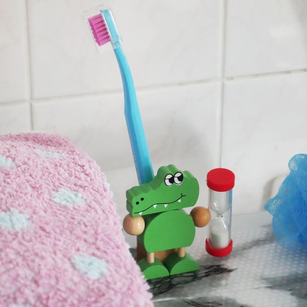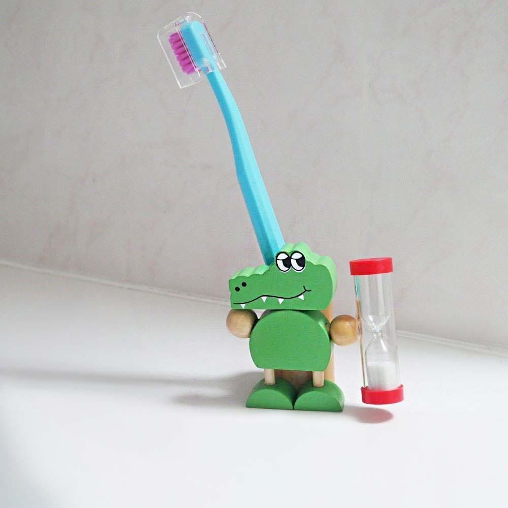 Tento veselý dřevěný stojánek na kartáček s motivem krokodýla svírajícího přesýpací hodiny je totiž skvělou volbou pro všechny, co mají problém vydržet, a hlavně správně dočistit své zoubky. Dokud se písek v hodinách nepřesype, tak zkrátka není hotovo.