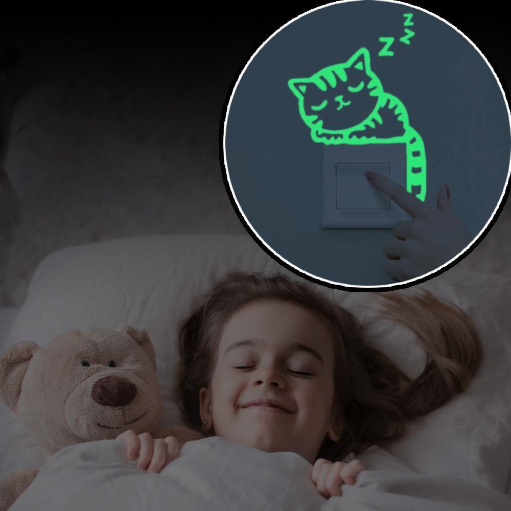 Samolepka je perfektní ozdobou nejen v dětském pokojíčku. Díky tomu, že ve tmě svítí, usnadní orientaci ve tmě. Samolepkou můžete ozdobit nejen vypínač, ale i zásuvku.