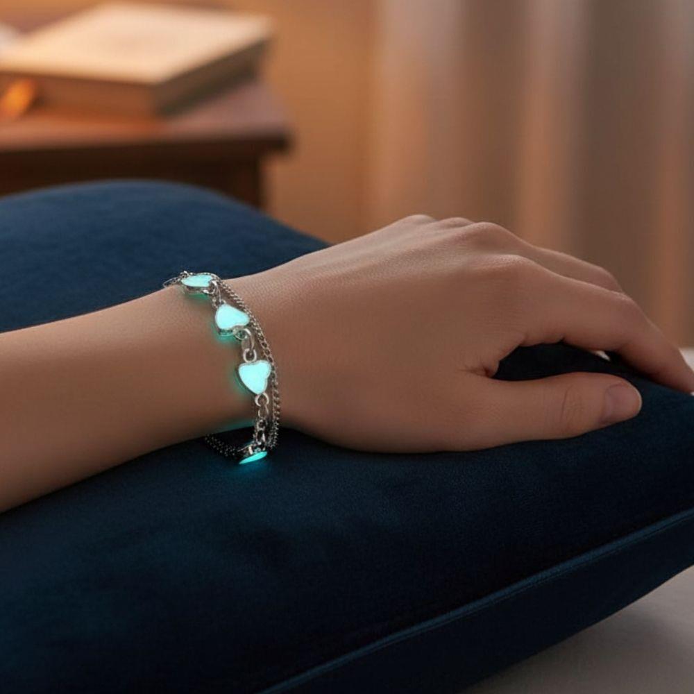 Vybrat náramek, aby se hodil téměř ke každé dívce či ženě, není často snadné. A k tomu takový, aby se dal nosit skoro ke všemu, už vůbec ne. My ale máme jeden, který na první pohled vypadá jako jednoduchý náramek s pár srdíčky, ale je přitom více než obyčejný! Srdíčka jsou totiž z fluorescentního materiálu, který se po setmění rozsvítí a vytvoří tak auru jedinečného šperku.