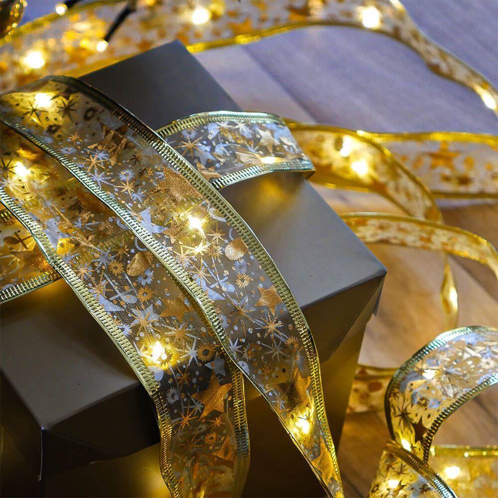 Chcete vylepšit vaši vánoční výzdobu? Pak si pořiďte svítící vánoční stuhu, která vám pomůže vytvořit neskutečnou a příjemnou atmosféru plnou světla a magie. Lze ji namotat na stromek, připevnit na dveře, zavěsit na strop nebo ji položit na stůl. Svítící stuha šetří energii, jelikož se napájí 3 AA bateriemi.