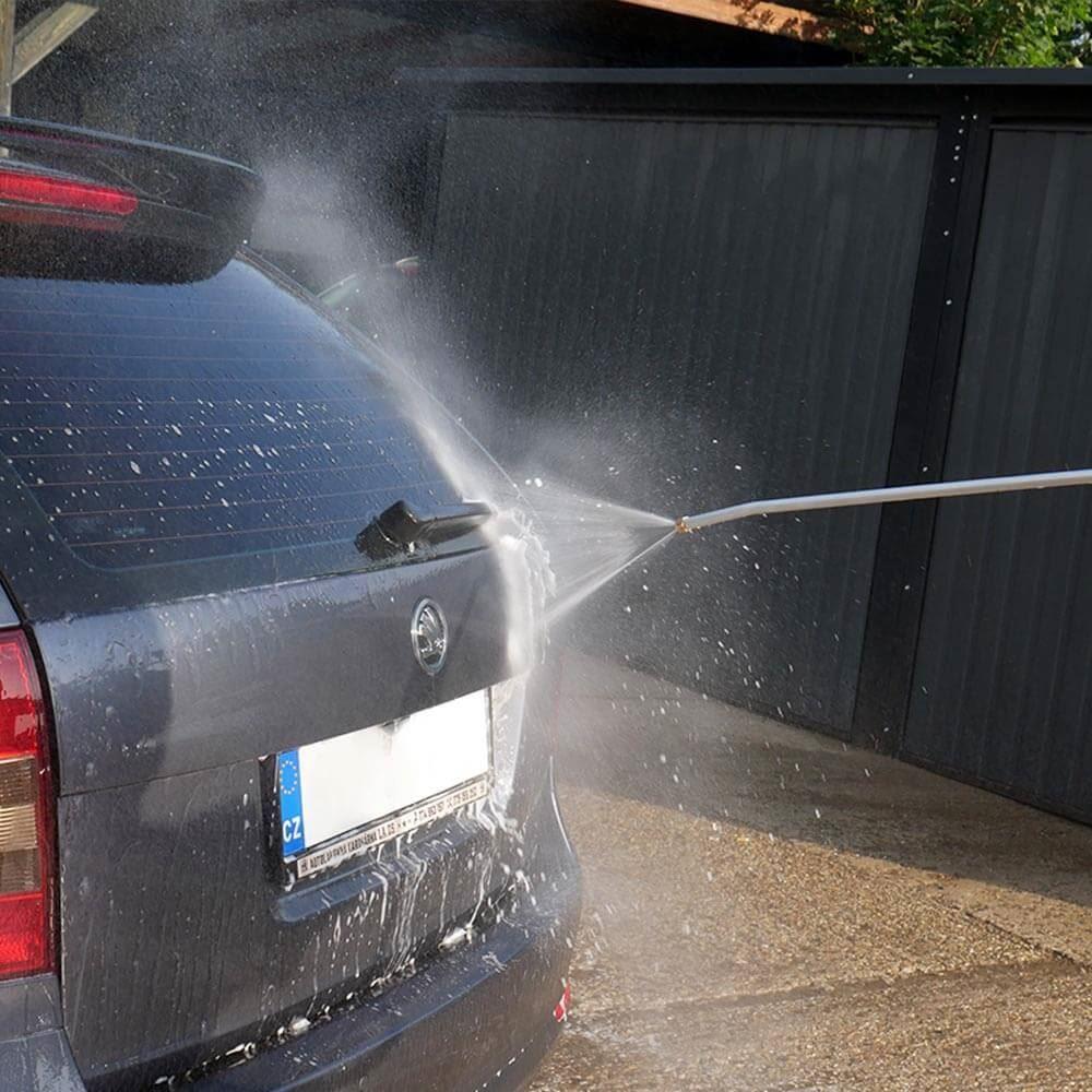 Potřebujete umýt zahradní nábytek, vystříkat dlažbu, chodník nebo umýt auto? Díky tlakovému nástavci se snadno zbavíte nečistot a dokonce i bahna. Je vhodný k čištění automobilů, lodí, perfektně odstraní veškeré nečistoty také z okapů, markýzy nebo pergoly.
