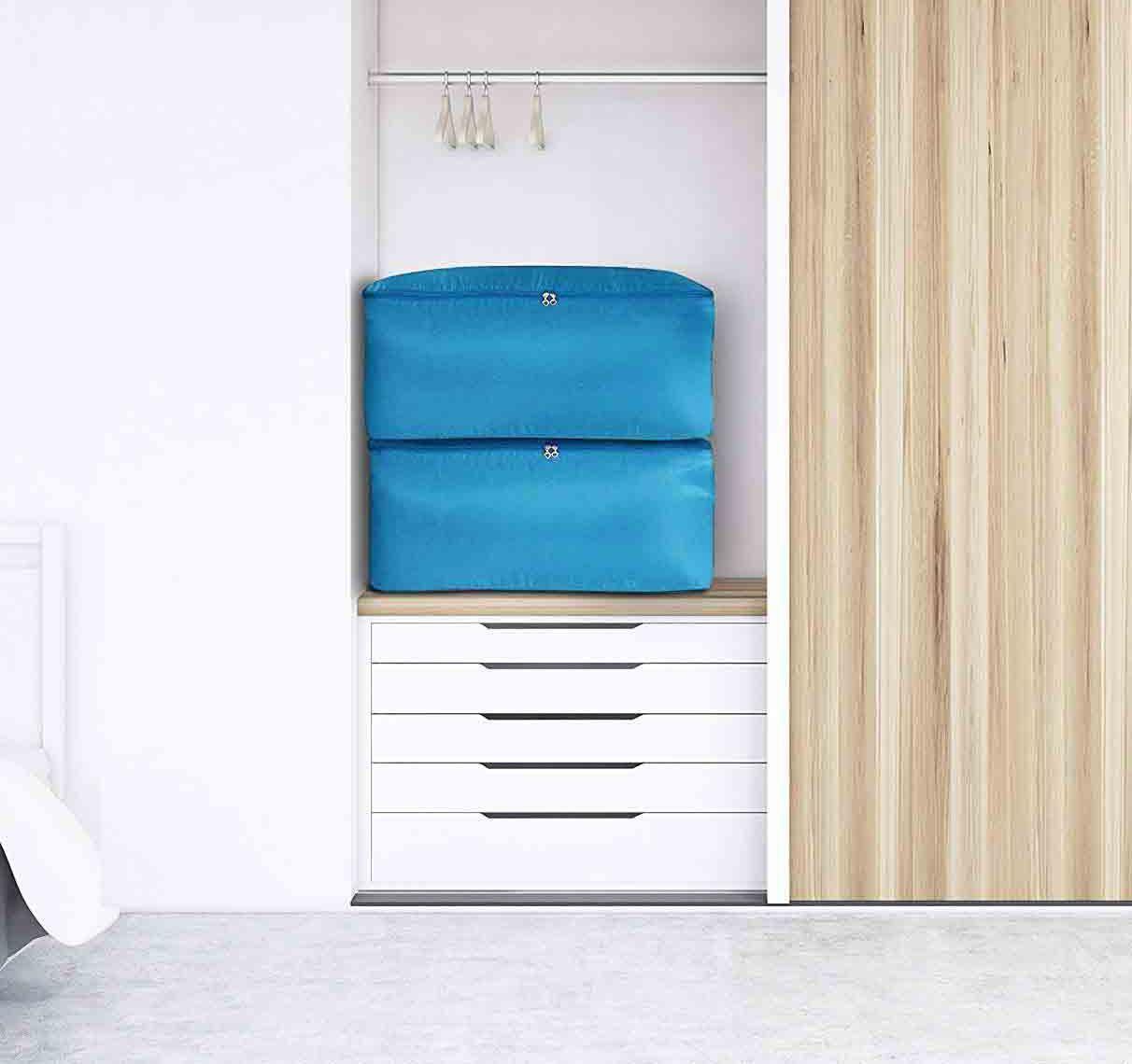 Naplněný vak jednoduše zasuňte pod postel nebo vložte do skříně. Až budete oblečení nebo deky opět potřebovat, stačí je z vaku opět vyndat a budou ihned připravené k použití. Pro lepší manipulaci je vak opatřen rukojetí na každé straně.
