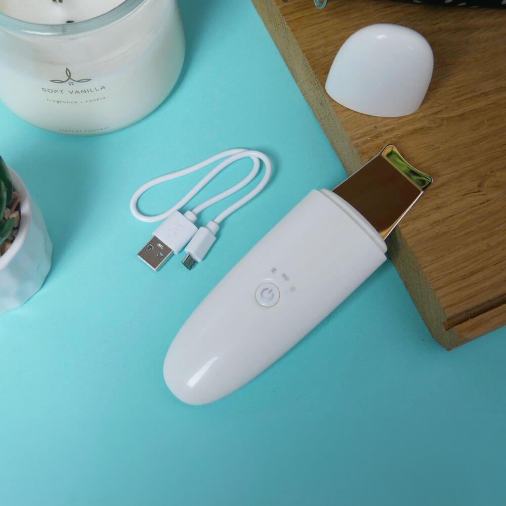 Špachtle je vhodná pro všechny typy pleti a její ovládání je maximálně snadné. Po odlíčení stačí navlhčit pleť, přiložit špachtli pod úhlem 45° a jemnými tahy vyčistit celý obličej. Tlačítkem lze jednoduše přepínat mezi dvěma režimy. Nabijete ji během chvilky pomocí přibaleného USB kabelu, takže je připravena vždy, když ji potřebujete.