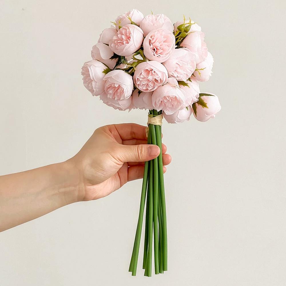 Umělá kytice pivoněk je ideální volbou pro všechny, kteří chtějí mít doma krásné květiny bez starostí. Svazek obsahuje 9 jemně růžových pivoněk, které působí romanticky, svěže a velmi elegantně. Díky bohatému vzhledu vyniknou samostatně ve váze, ale zároveň je můžete snadno kombinovat s dalšími květinami nebo zelení a vytvořit vlastní aranžmá.Kytice se hodí na jídelní stůl, komodu, noční stolek i jako součást slavnostní či svatební výzdoby. Velkou výhodou je, že nevyžaduje žádnou péči – nepotřebuje vodu, neuvadne a zůstane krásná po celý rok.