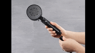 Úsporná sprchová hlavice je praktický doplněk do každé koupelny. Hlavice se jednoduše zapíná pomocí tlačítka OFF. Nabízí celkem 5 různých typů proudění vody. Patří sem masážní proudění vody, mix, kapky deště, pulsující a rozprašovací proudění vody. Proudění vody se nastavuje pomocí malé páčky na točící části. Sprchová hlavice je vhodná na všechny typy sprchových hadic. Průměr šroubovací části je 2 cm. Sprchovou hlavici jednoduše našroubujete na sprchovou hadici. Hlavice je laděná do černé barvy a vypadá velmi dobře a stylově.