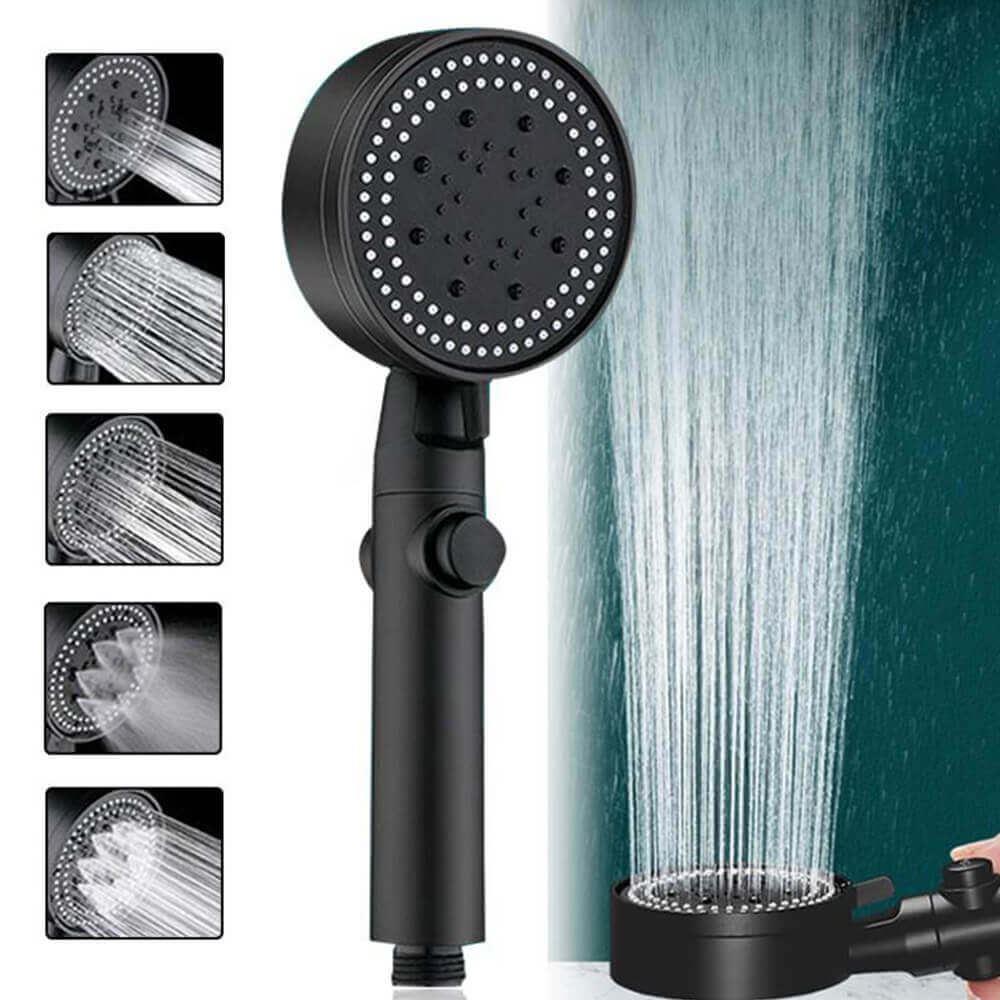 Pět typů proudění Přizpůsobivý všem koupelnovým hadicím Univerzální šroubovací závit Černý design