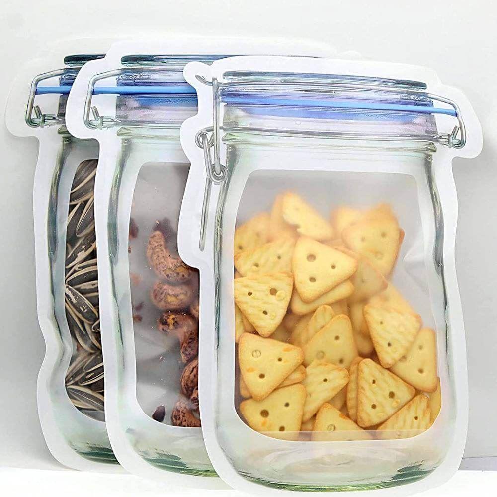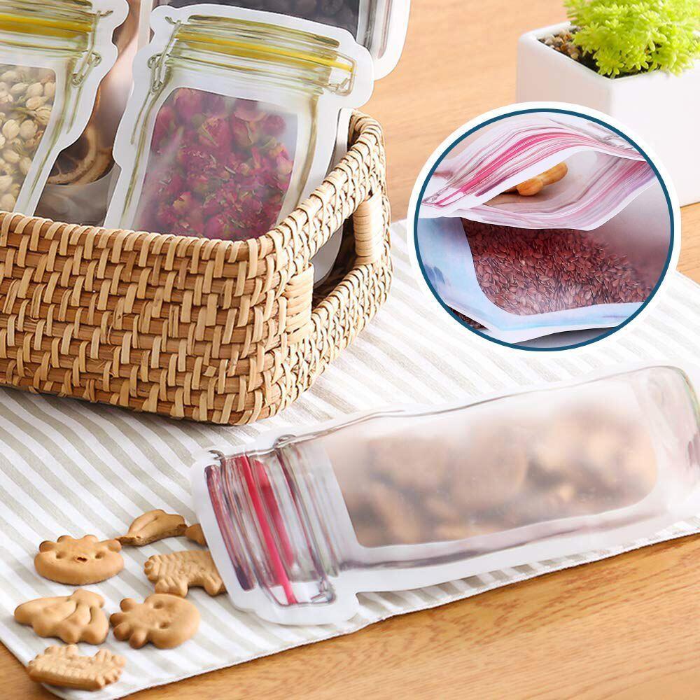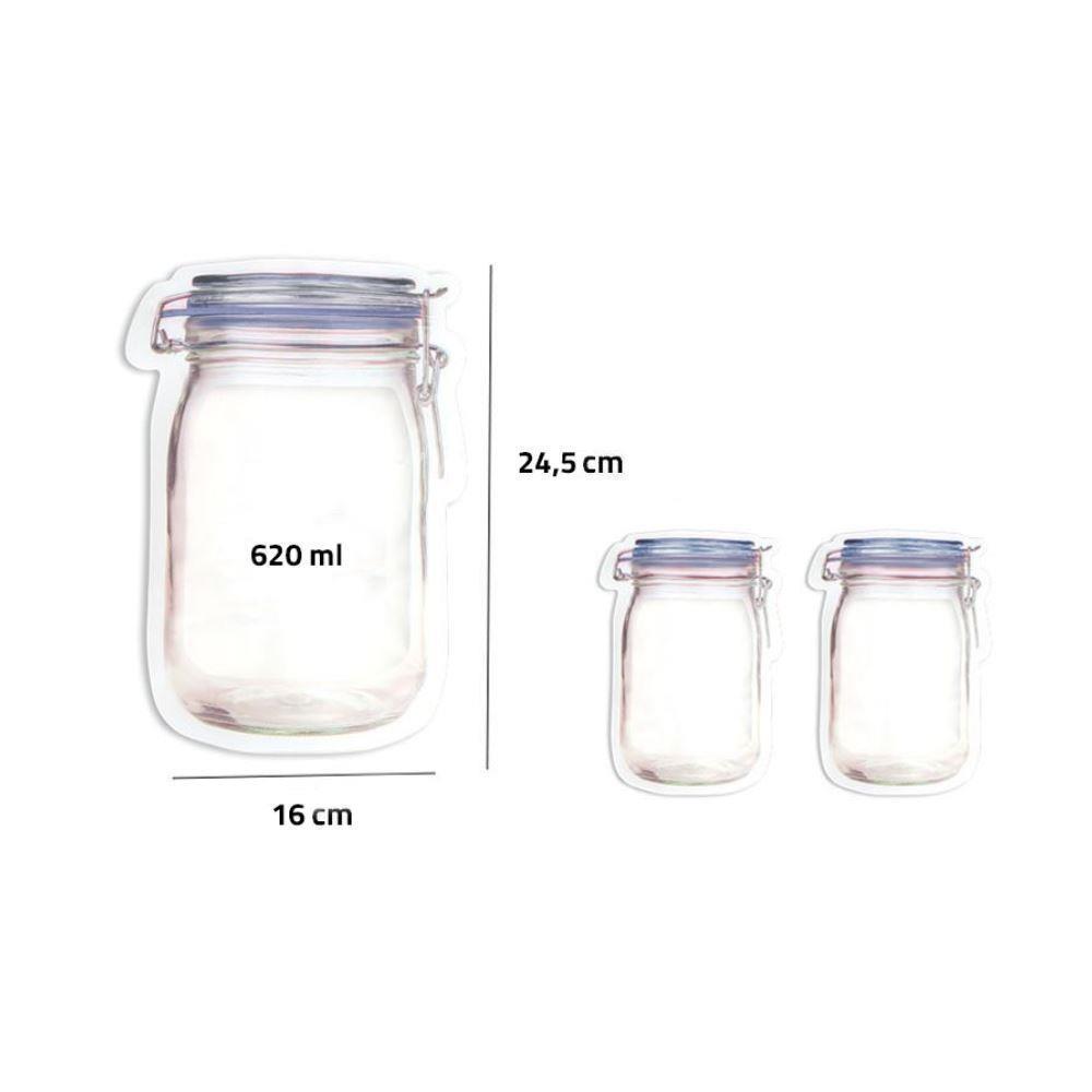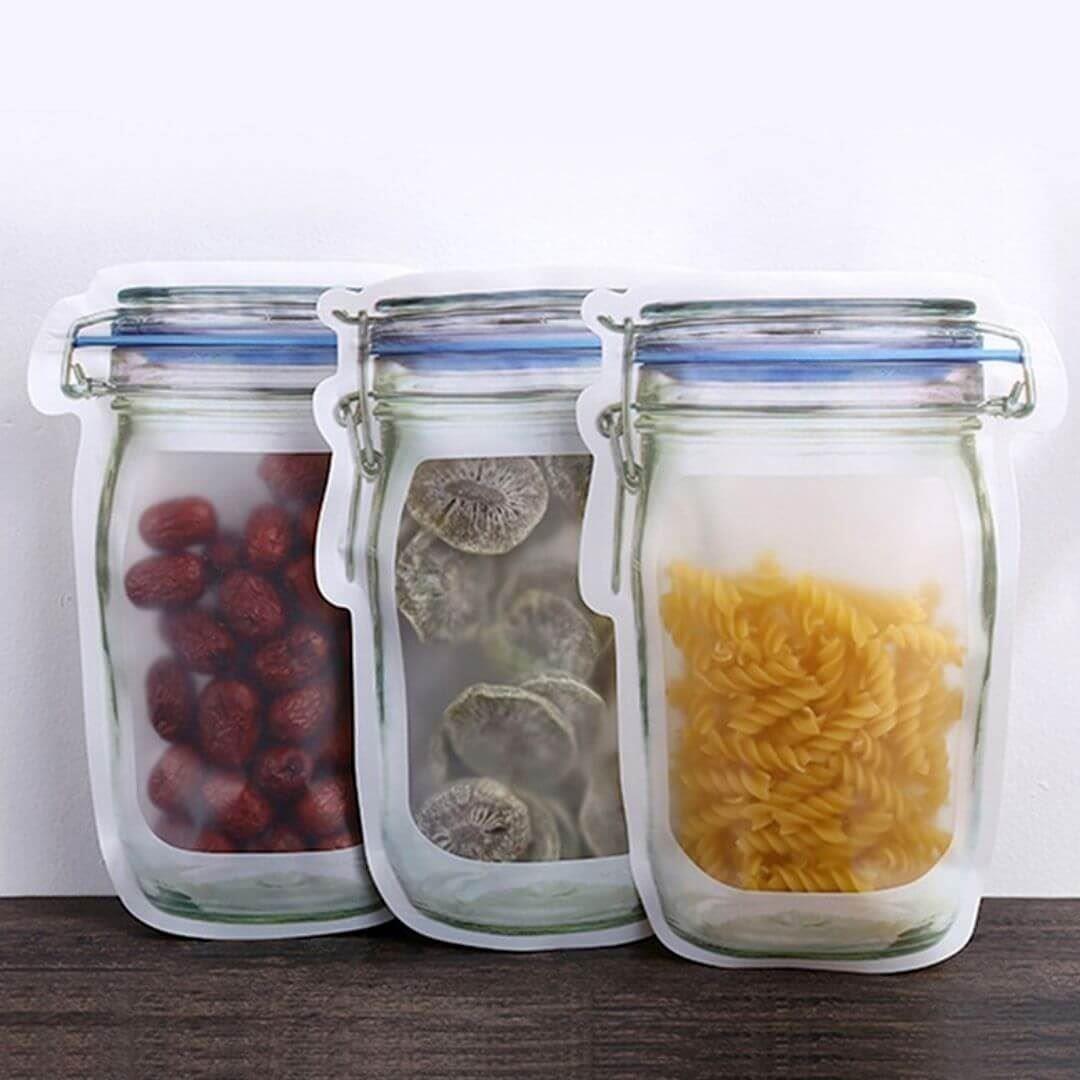 Zavírací sáček se nápadně podobá uzavíratelné sklenici, ale oproti sklenici má tu výhodu, že je mnohem lehčí a lépe skladný. Tento typ sáčku je opatřený vzduchotěsným zipovým zavíráním. Proto budou potraviny po vyjmutí jako čerstvé. Vhodný na potraviny jako například koření, těstoviny, oříšky nebo rýži. Možnost opakovatelného používání. Díky svojí velikosti ho můžete využívat také při cestách na svačinu. Ilustrační video: