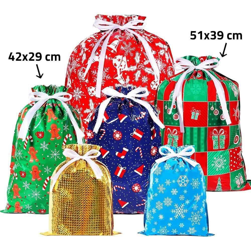 Vánoční dárkový balicí sáček se šňůrkou je skvělým a elegantním řešením pro všechny, kteří potřebují rychle a stylově zabalit své vánoční dárky. Vyrobeny z pevného a laminovaného materiálu, tyto sáčky jsou navrženy tak, aby vydržely a mohly být použity opakovaně.Zjednodušte si balení dárků s těmito praktickými vánočními sáčky, které umožňují rychlé zabalení během několika vteřin. Jsou také ideální pro snížení odpadu, protože je lze znovu použít. Vytvořte pod stromečkem kouzelnou atmosféru s těmito nádhernými a praktickými balicími sáčky s uzavíráním na šňůrku.