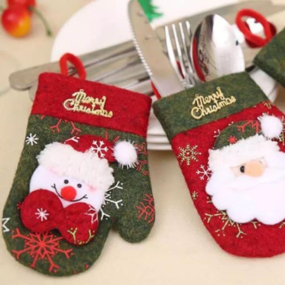 Roztomilá dekorace Vánoční motiv pro kouzelnou atmosféru Originálně prostřené příbory Rukavice na drobné dárky