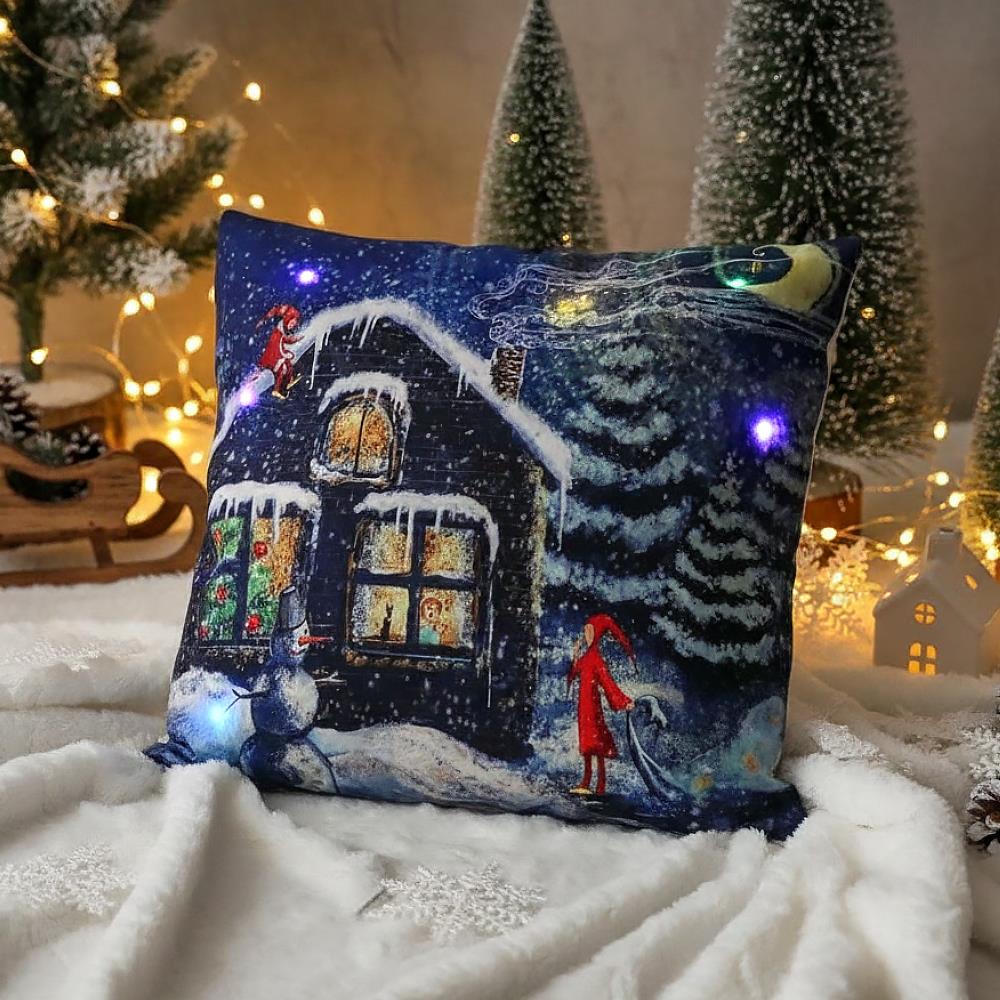 Dekorace, se kterou snadno doplníte výzdobu na pohovce, křesle či na posteli. Povlak s vánočním motivem stačí navléknout na malý polštářek a vystavit na vybrané místo. Po zapnutí bude polštář navíc svítit barevnými světýlky, které jsou uvnitř povlaku zabudované.
