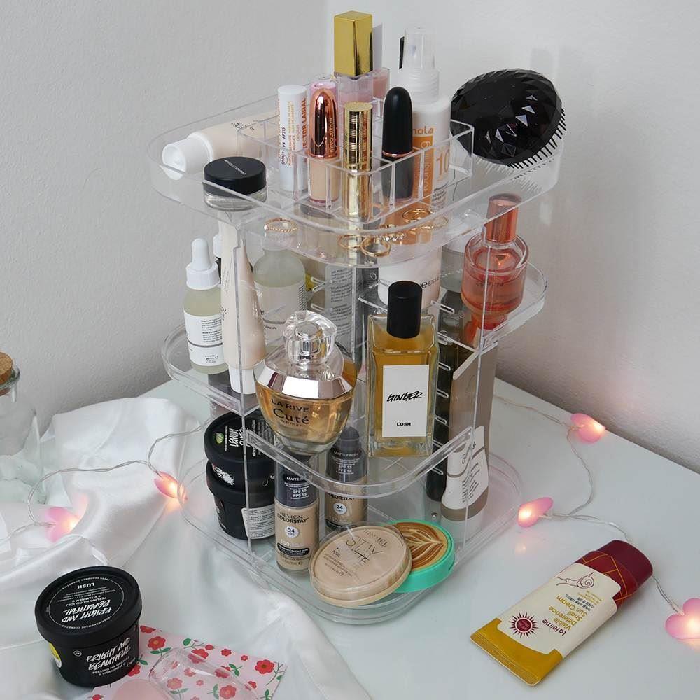Pleťová kosmetika, makeup, ale i parfémy a doplňky budou v bezpečí uložené v poličkách tohoto otočného organizéru