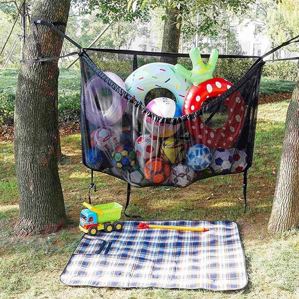 Praktická závěsná síť na hračky Udrží vaši zahradu upravenou a organizovanou Hračky i sportovní vybavení budou vždy na svém místě Jednoduché a rychlé uskladnění bez nepořádku