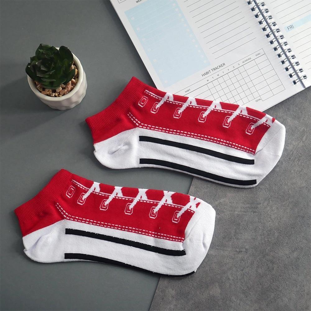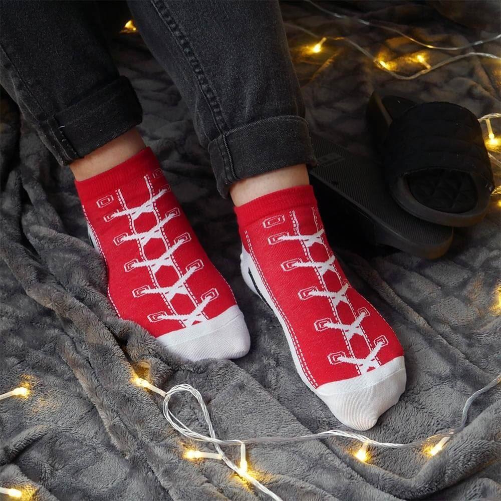 Také jste se stali milovníky veselých ponožek? Pak vám tyto ponožky s designem bot nesmí ve sbírce chybět. Skvěle se hodí ke každému outfitu a upozorní tak okolí na to, že vám smysl pro humor určitě nechybí.Jsou z příjemného materiálu, zajistí vám dokonalý komfort. Díky univerzální velikosti je ocení jak muži, tak ženy. Teniskové ponožky jsou také skvělým dárkem pro všechny veselé duše. Originální ponožky jsou čím dál tím více oblíbené a tak se hodí jak do společnosti, tak na každodenní nošení.