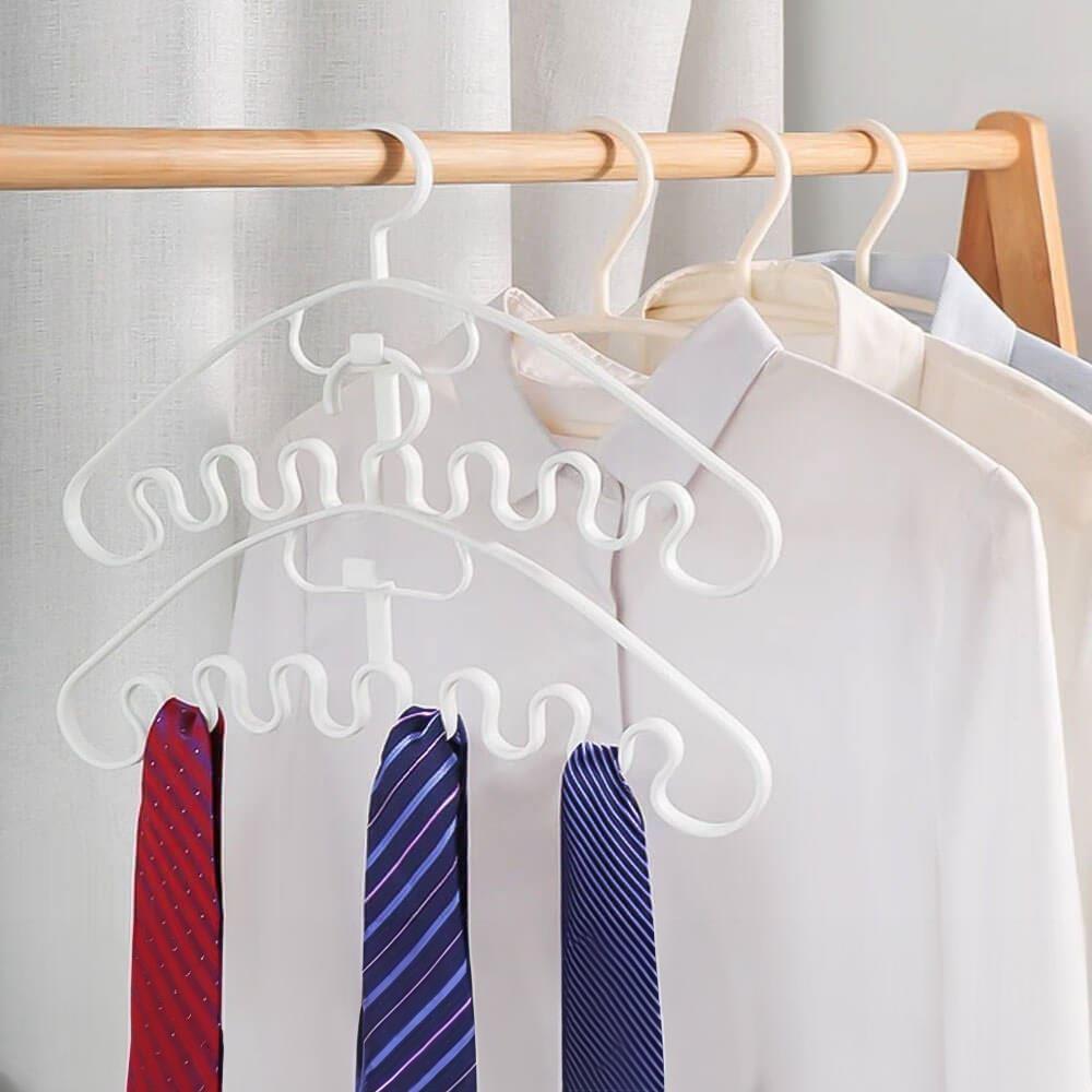 Zorganizujte si svůj šatník společně s multifunkčním ramínkem se záhyby. Na ramínko si můžete zavěsit kousky oblečení jako šátky, pásky, kravaty a další oblečení jaké vás napadne. Ušetříte místo ve skříni a oblečení budete mít vždy po ruce. Ramínko je v zajímavém provedení a lze na sebe zavěšovat i více stejných ramínek se záhyby. Oživte svou skříň s nevšedním ramínkem.