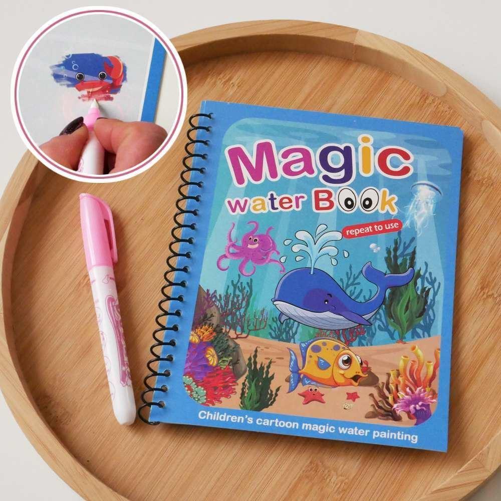 Skvělé kreativní tvoření, u kterého se nikdo nezašpiní! To jsou vodové omalovánky. Sešit se 4 veselými obrázky. V sadě najdete kromě sešitu také pero plnitelné vodou, s jehož pomocí snadno obrázky vybarvíte.Barvičky vždy po pár minutách zmizí, omalovánky se tak dají používat opakovaně.