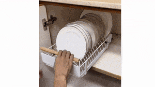 Praktický výsuvný organizér pomůže ušetřit místo v kuchyni Snadný přístup k talířům Všestranné využití – jako odkapávač na nádobí i jako přehledný organizér do skříňky Jednoduchá montáž Stabilní uchycení