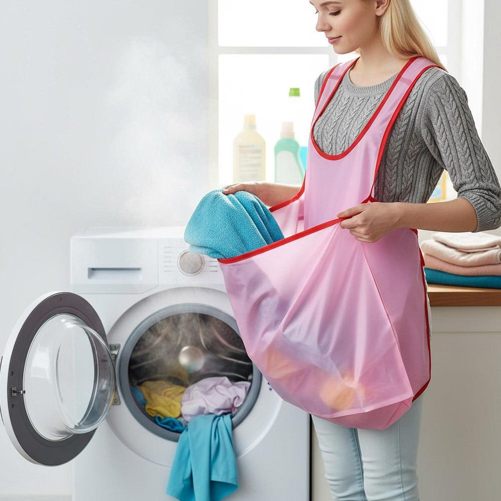 Znáte to. Pračka právě doprala a čeká vás další kolečko s prádlem. Zapomeňte na tahání těžkého koše nebo hledání rozházených kolíčků! S touto praktickou zástěrou na sbírání prádla bude praní i věšení mnohem jednodušší. Prostorná kapsa pojme čisté i špinavé prádlo i kolíčky, takže vše potřebné budete mít stále po ruce. Efektivnější sběr bez ohýbání znamená méně namáhání zad i více volného času pro vás. Zástěra je vyrobena z odolného polyesteru, nosí se pohodlně a ušetří vám spoustu práce při praní, věšení i úklidu prádla doma, na balkoně i na zahradě.