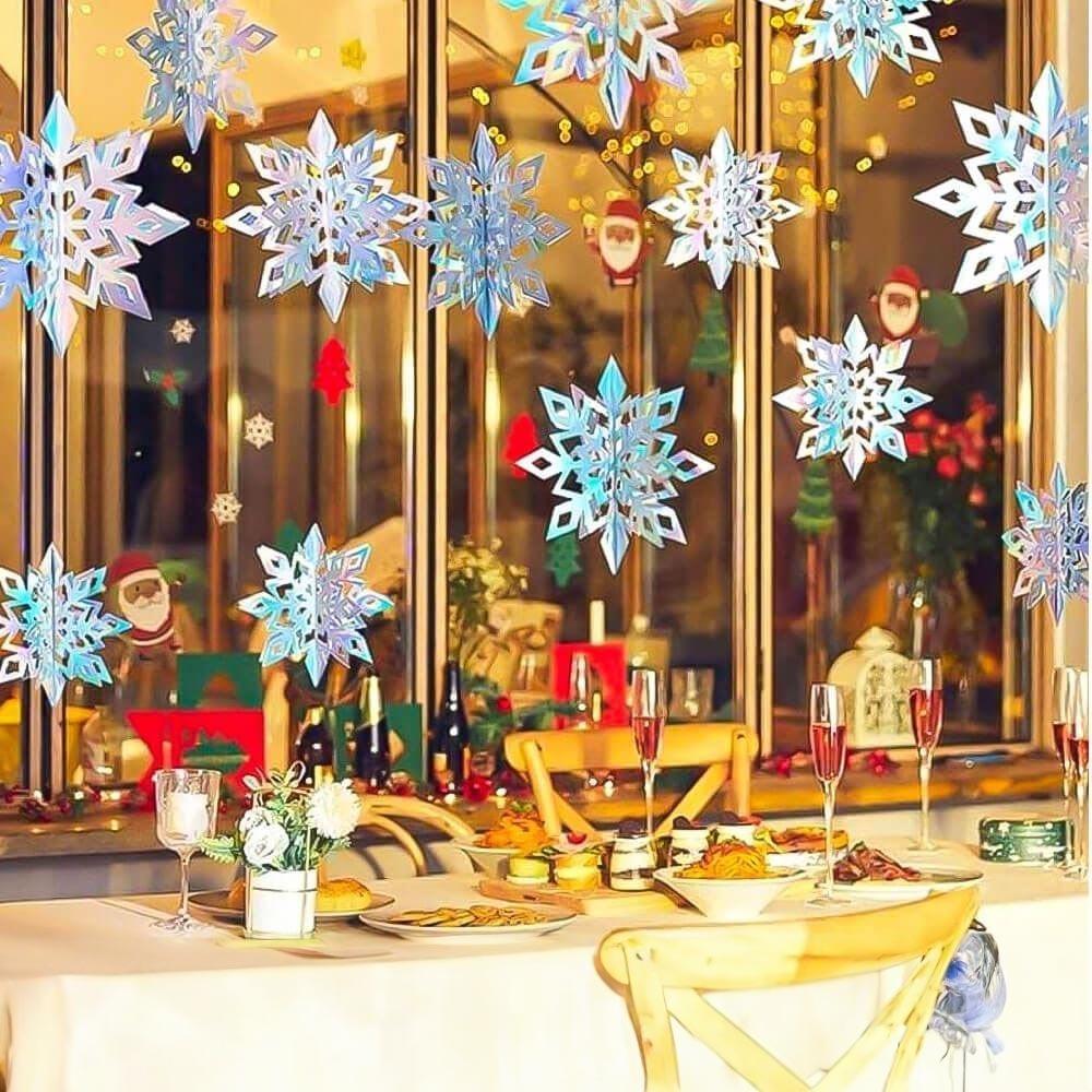 Okouzlující vánoční dekorace Sněhové vločky odrážejí světlo Snadná instalace a opakovaně použitelná Dekorace vhodná do různých interiérů