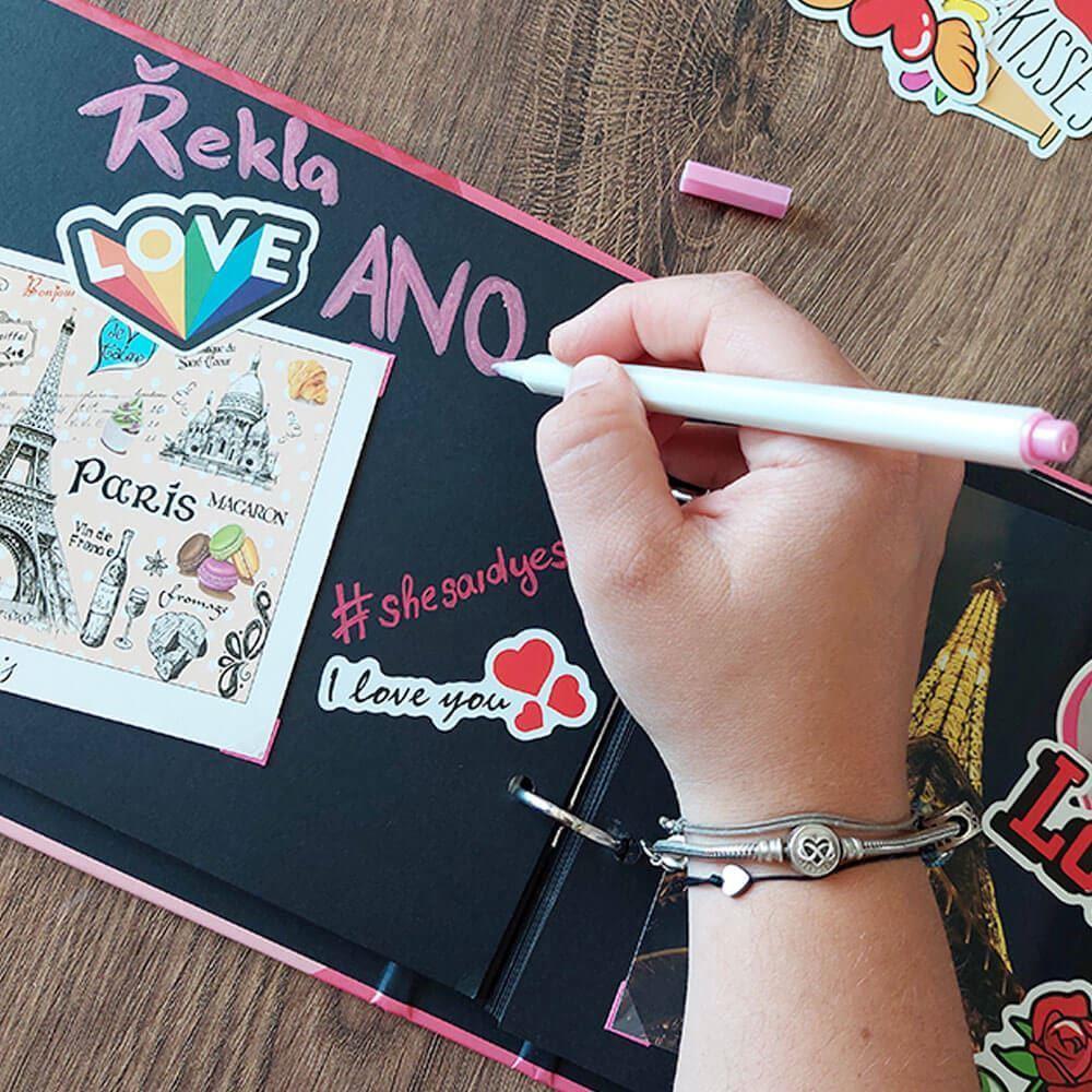 Neomezená kreativita Stačí nalepit fotky, napsat vzkazy… Snadné vyzdobení díky samolepkám Deník plný vzpomínek na lásku