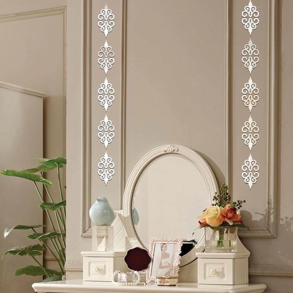 Zrcadlové samolepky ornamenty 10 ks - stříbrné